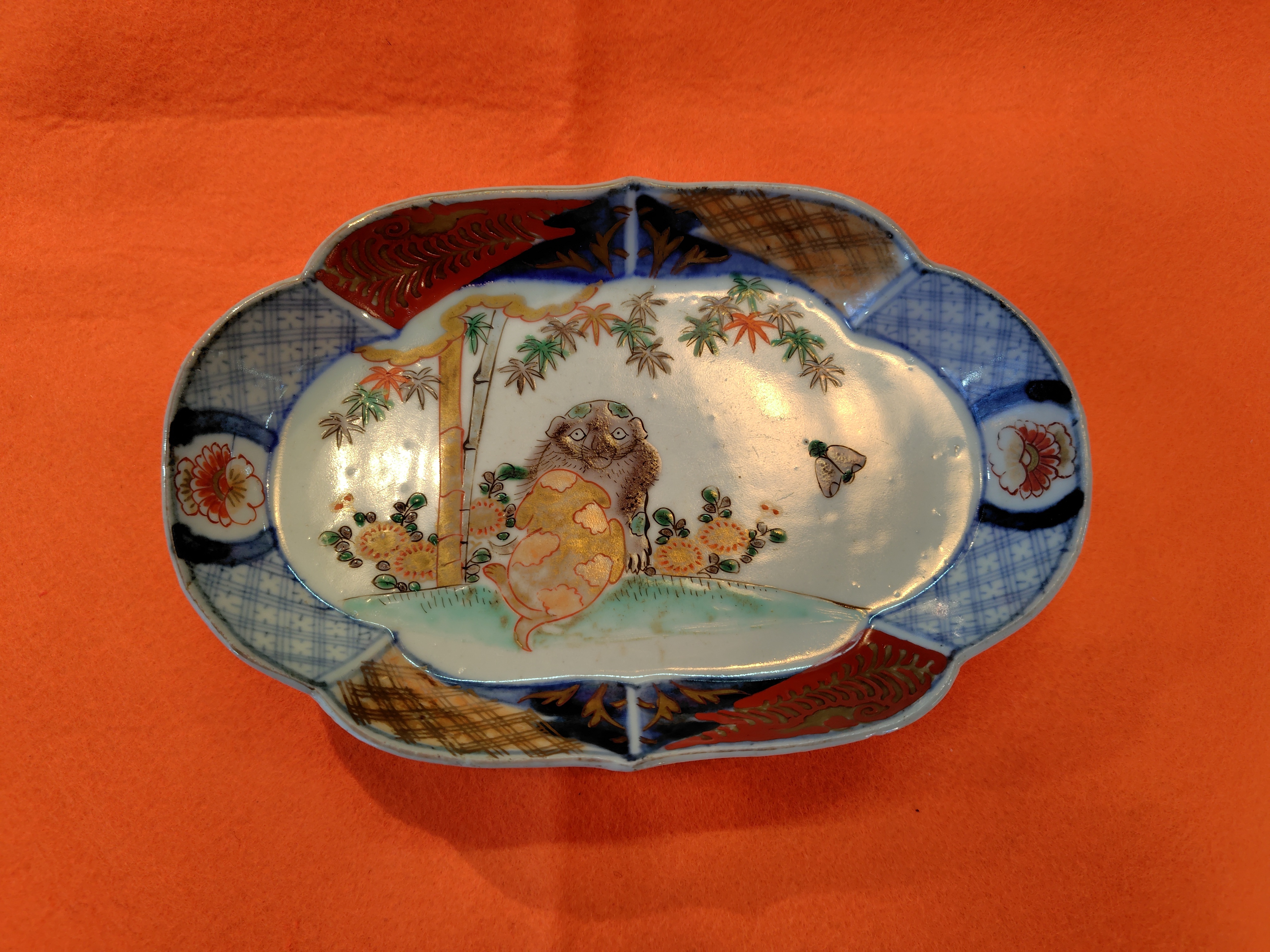 江戸から明治 色絵変形皿 伊万里 狗図