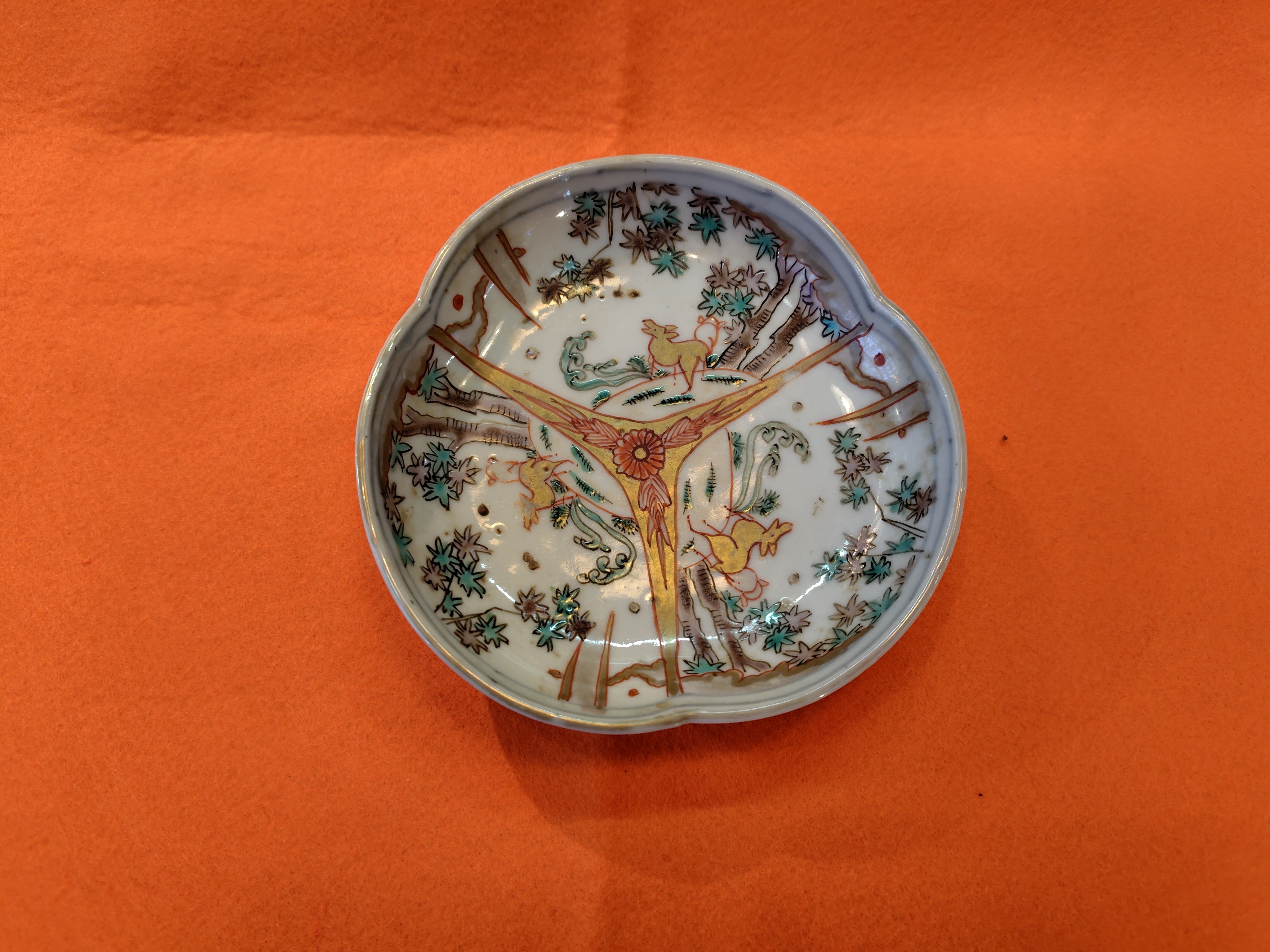 江戸 色絵変形皿 伊万里 鹿図