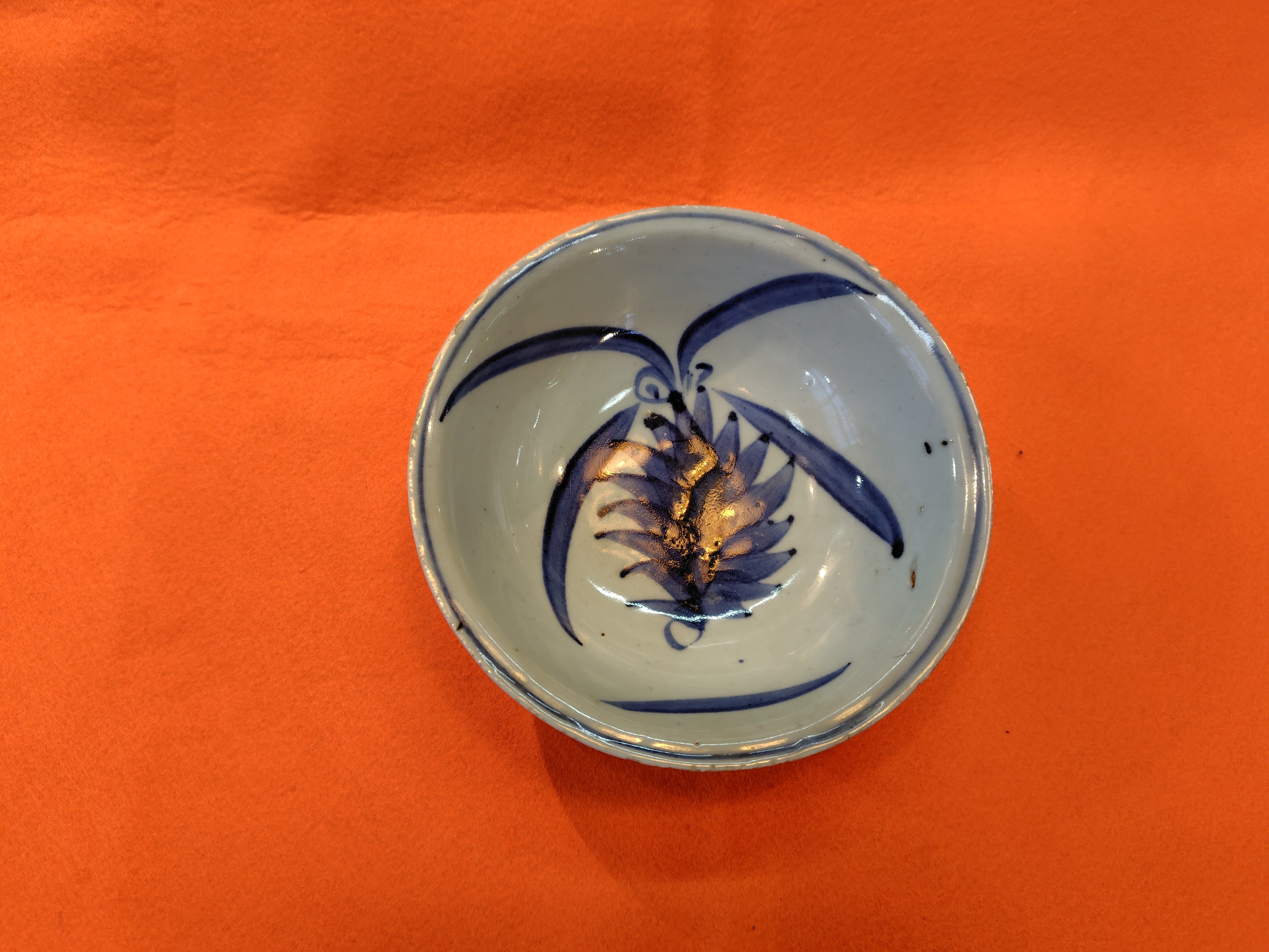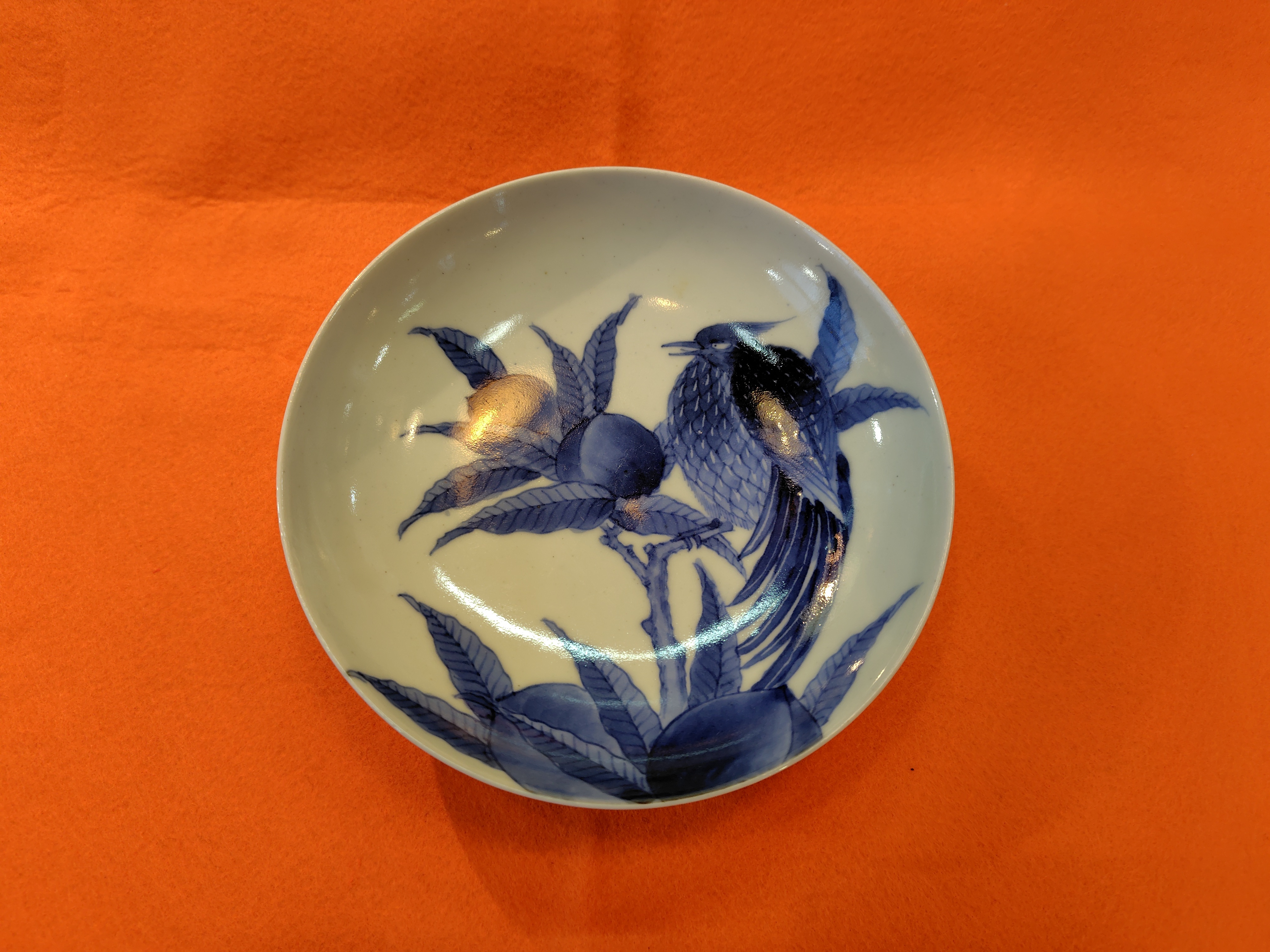 江戸 染付丸皿 植物図