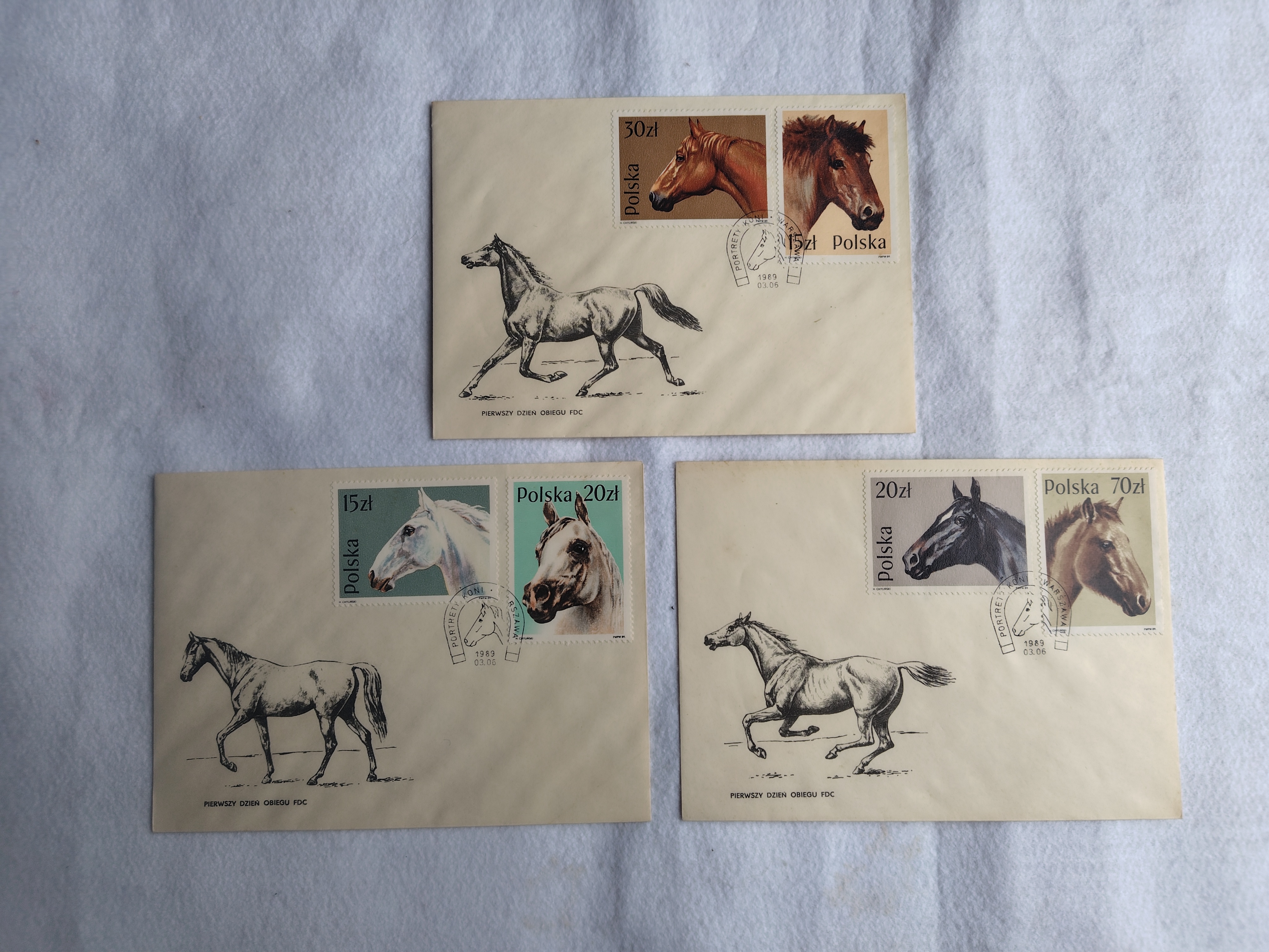 初日カバー ポーランド 馬 1989年