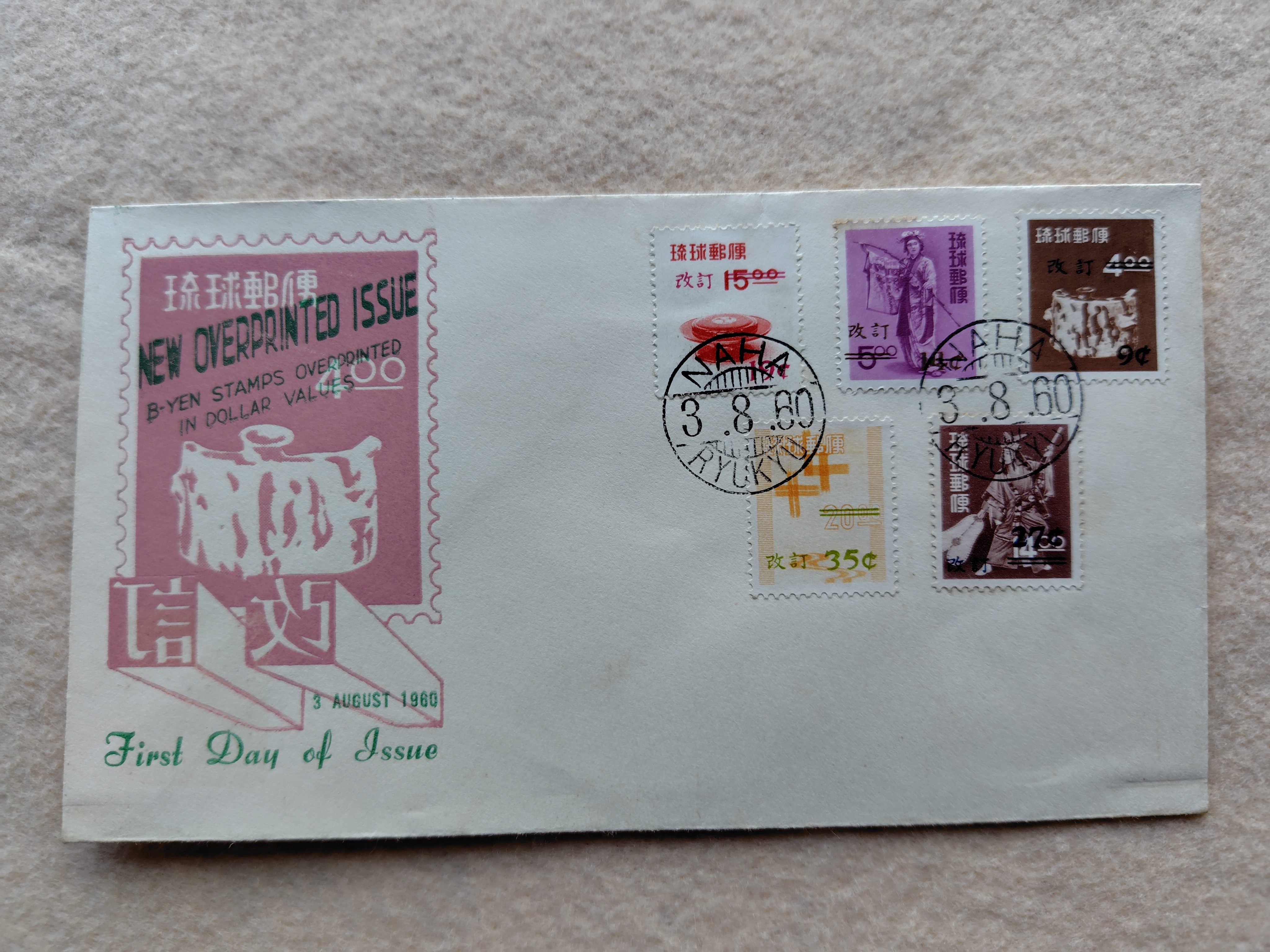 初日カバ- 琉球郵便 NEW OVERPRINTED ISSUE 1960