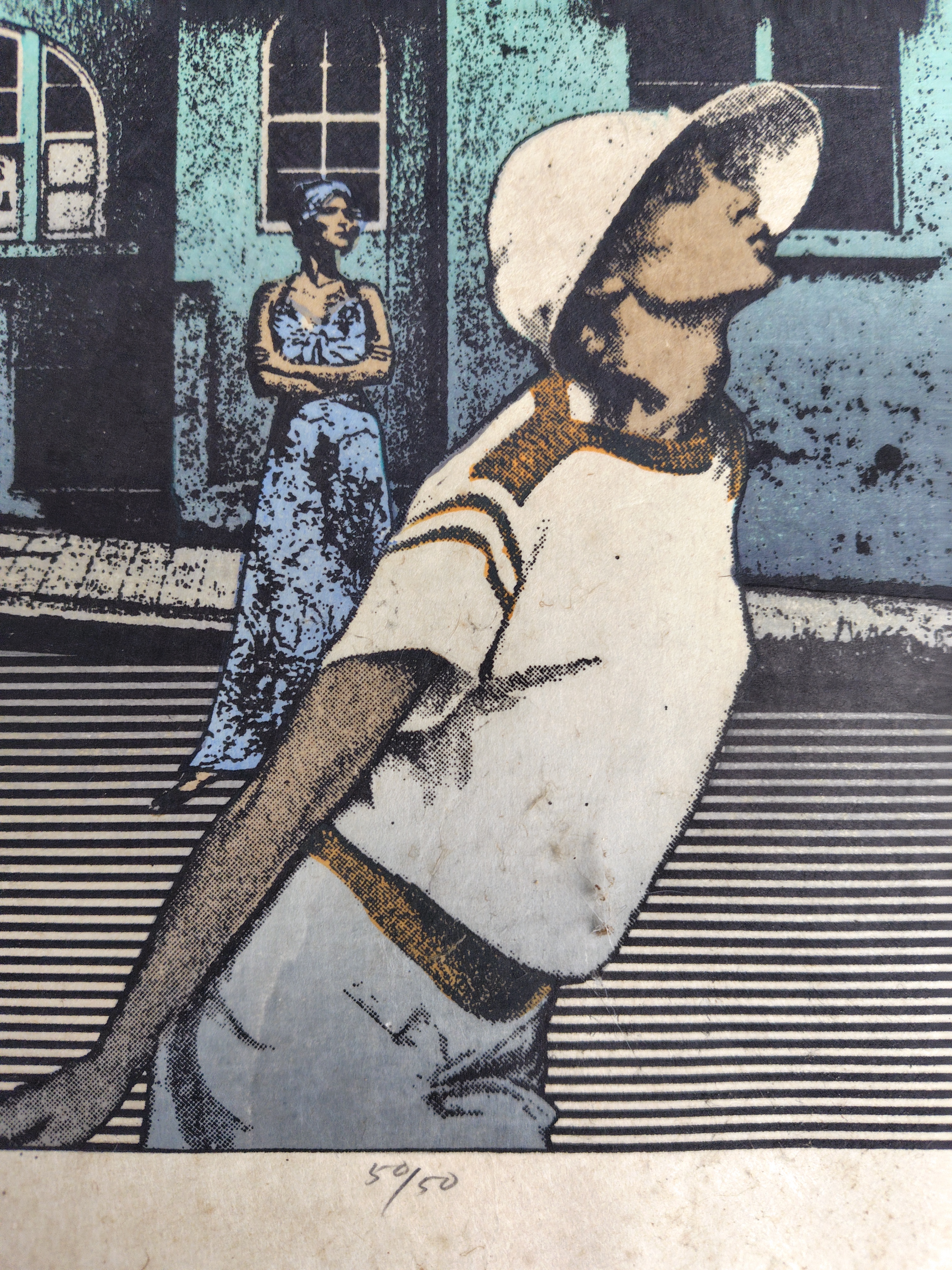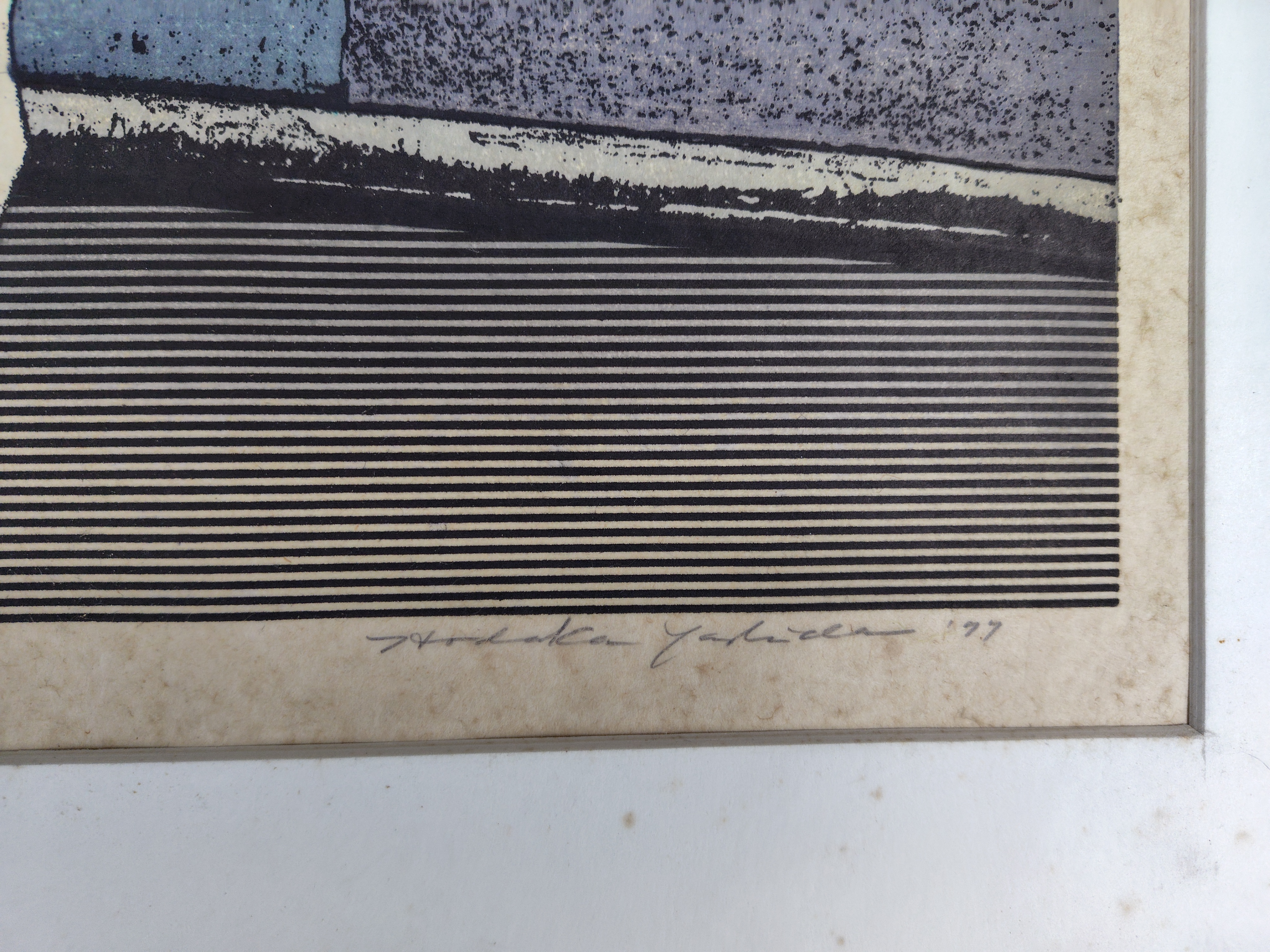 吉田穂高(よしだ ほだか) 銅版画 1977年 2026.03.19 版画/油絵/浮世絵 吉田穂高さんの銅版画作品です。タイトルは、「街外れの神話・昼」マット装済みです。大きさは、65x75㎝ エディションナンバーは、50/50マットに汚れが有ります。