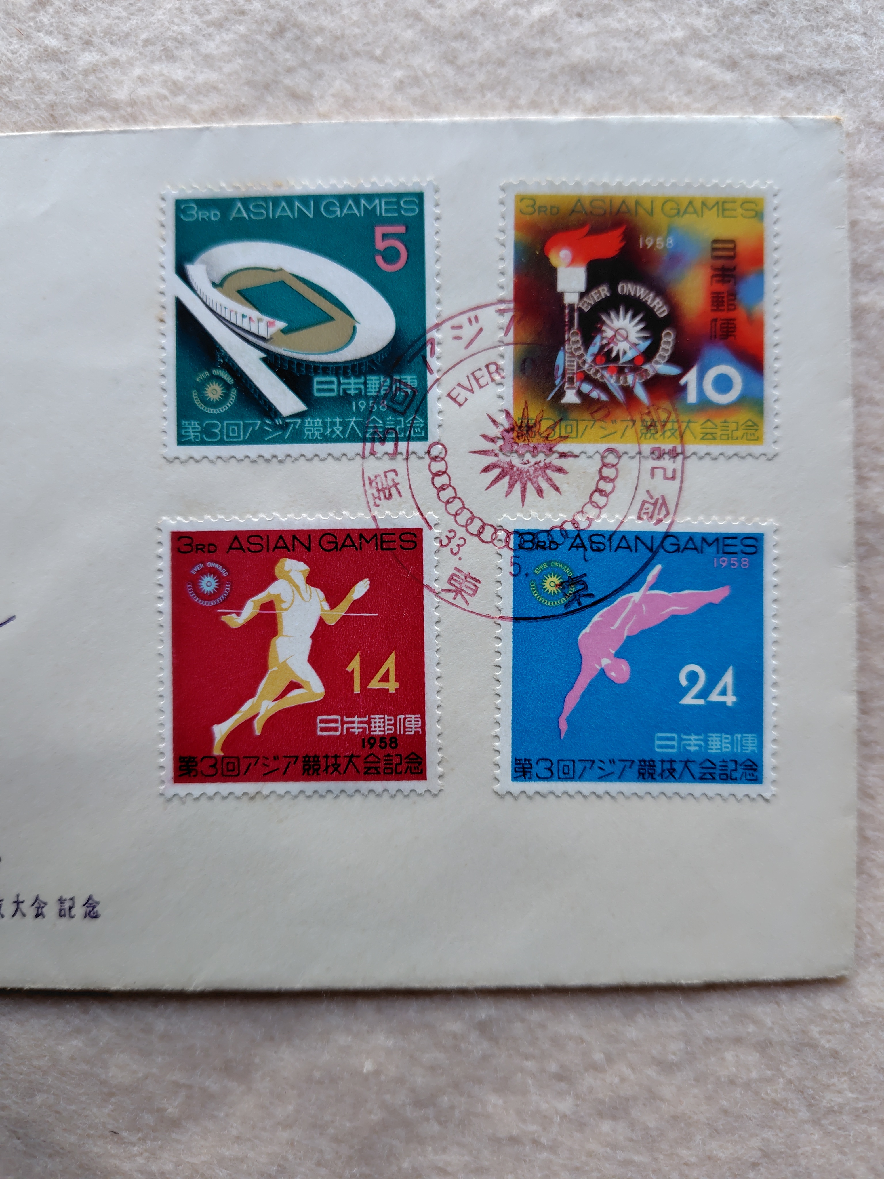 1958年に発行された第3回アジア競技大会記念の初日カバーです。