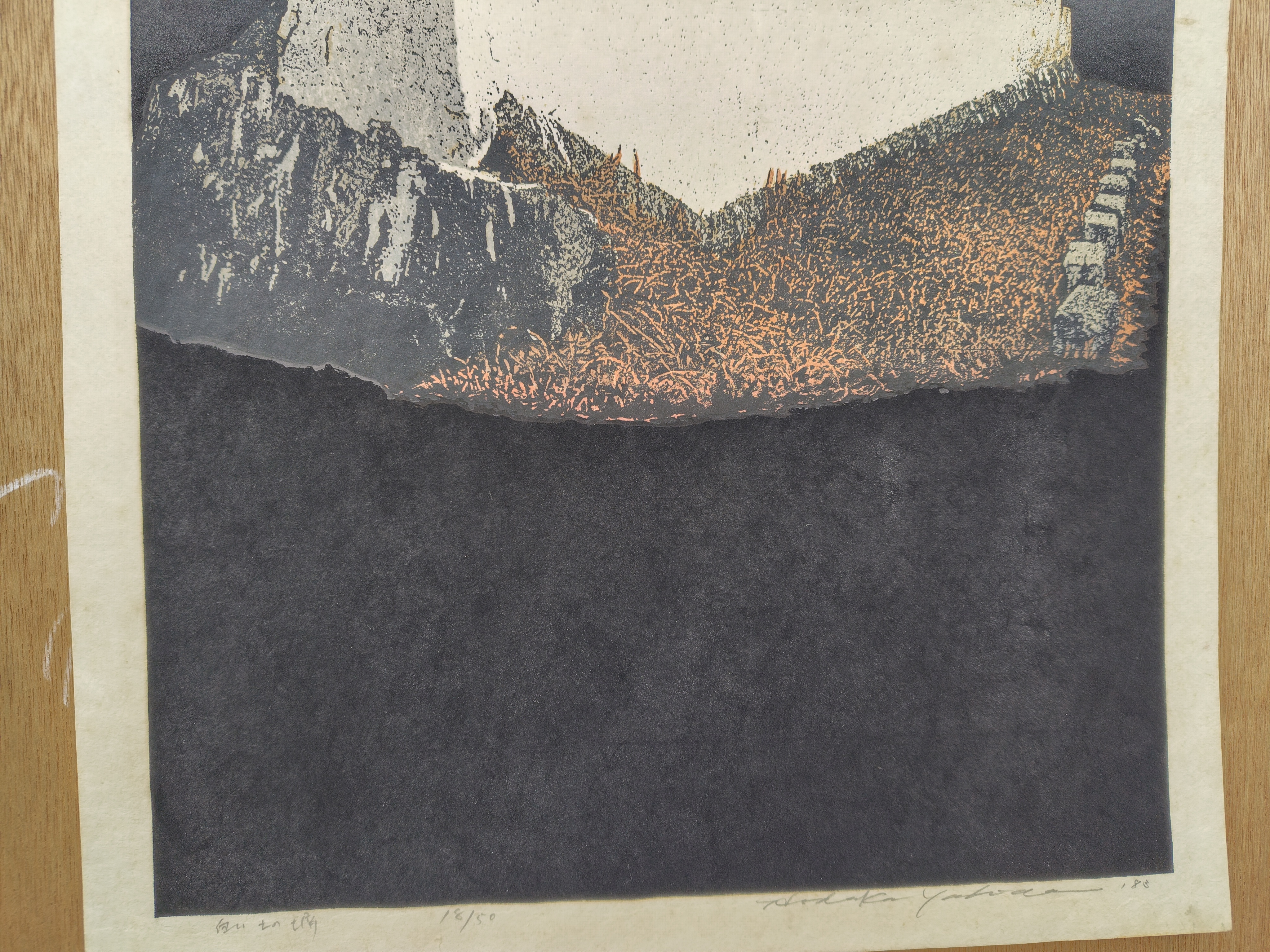 吉田穂高(よしだ ほだか) 木版画 白い土の壁 2026.04.15 版画/油絵/浮世絵 吉田穂高さんの木版画作品です。 シートの大きさは、70x37㎝ エディションナンバーは、18/50 状態は、少しシミが有ります。