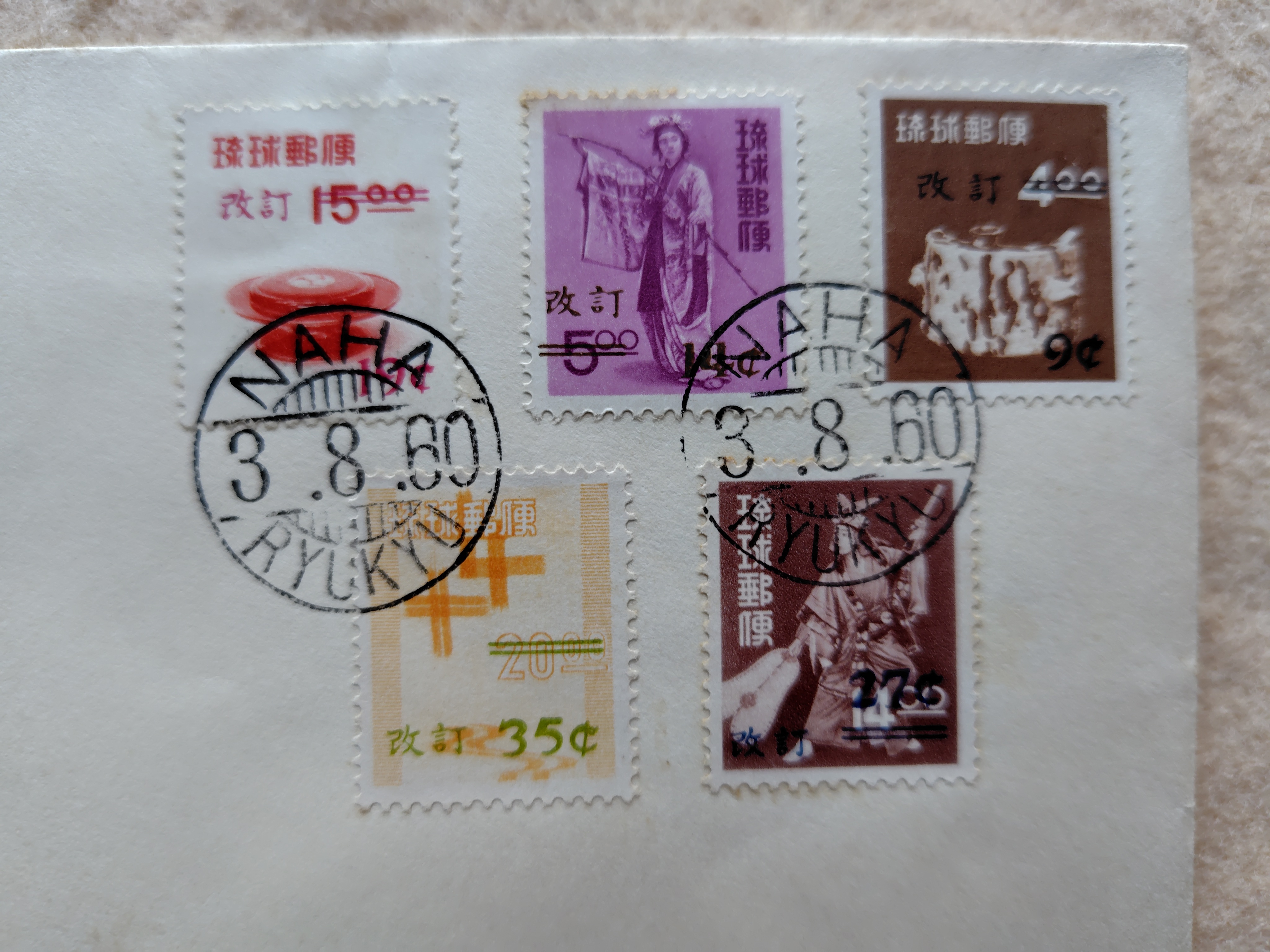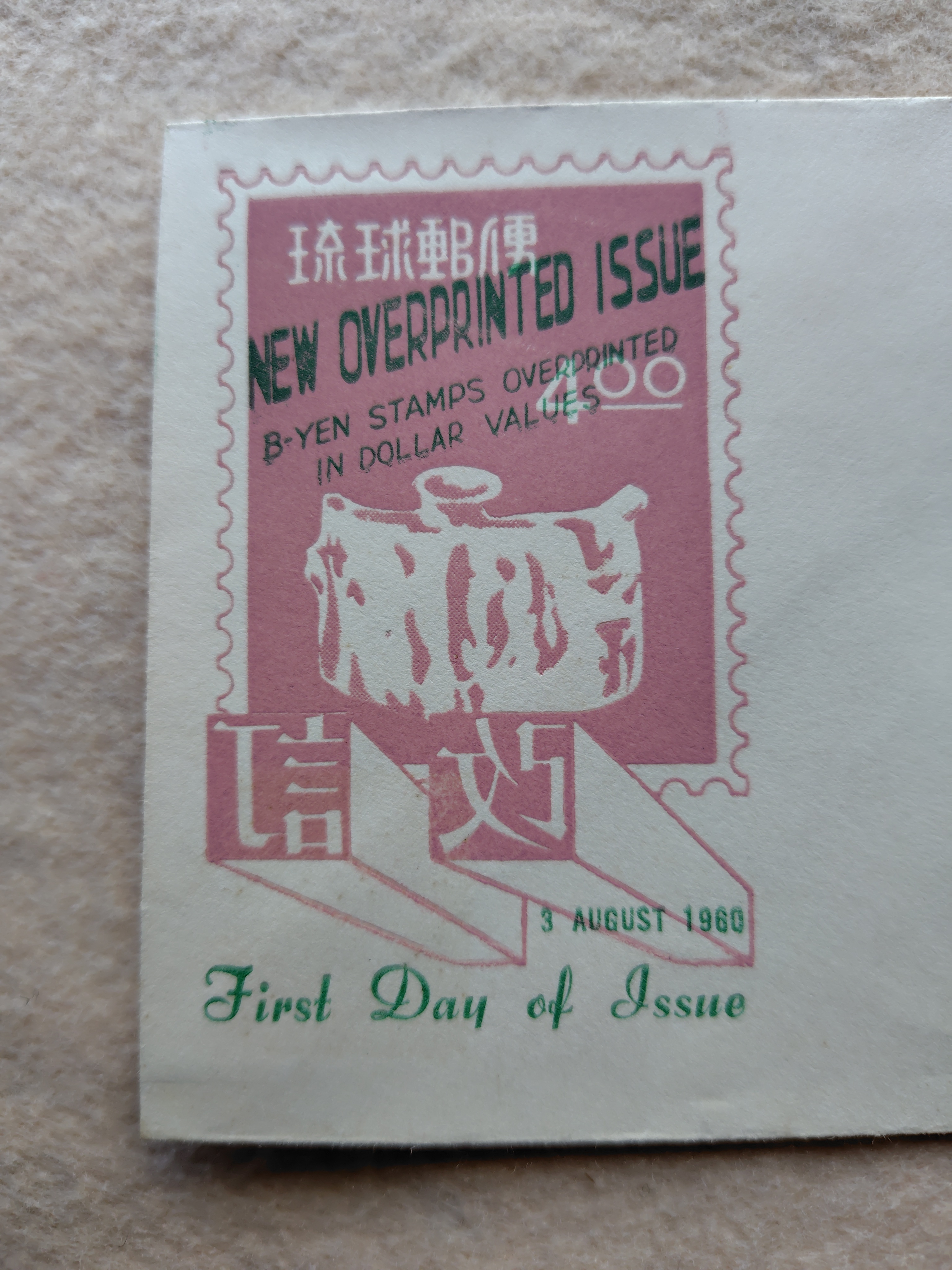 初日カバ- 琉球郵便 NEW OVERPRINTED ISSUE 1960 2026.04.17 家具・雑貨 1960年に発行された初日カバーです。歴史の記録かも? 消印は、1960年8月3日 NAHA 状態は、良好です。