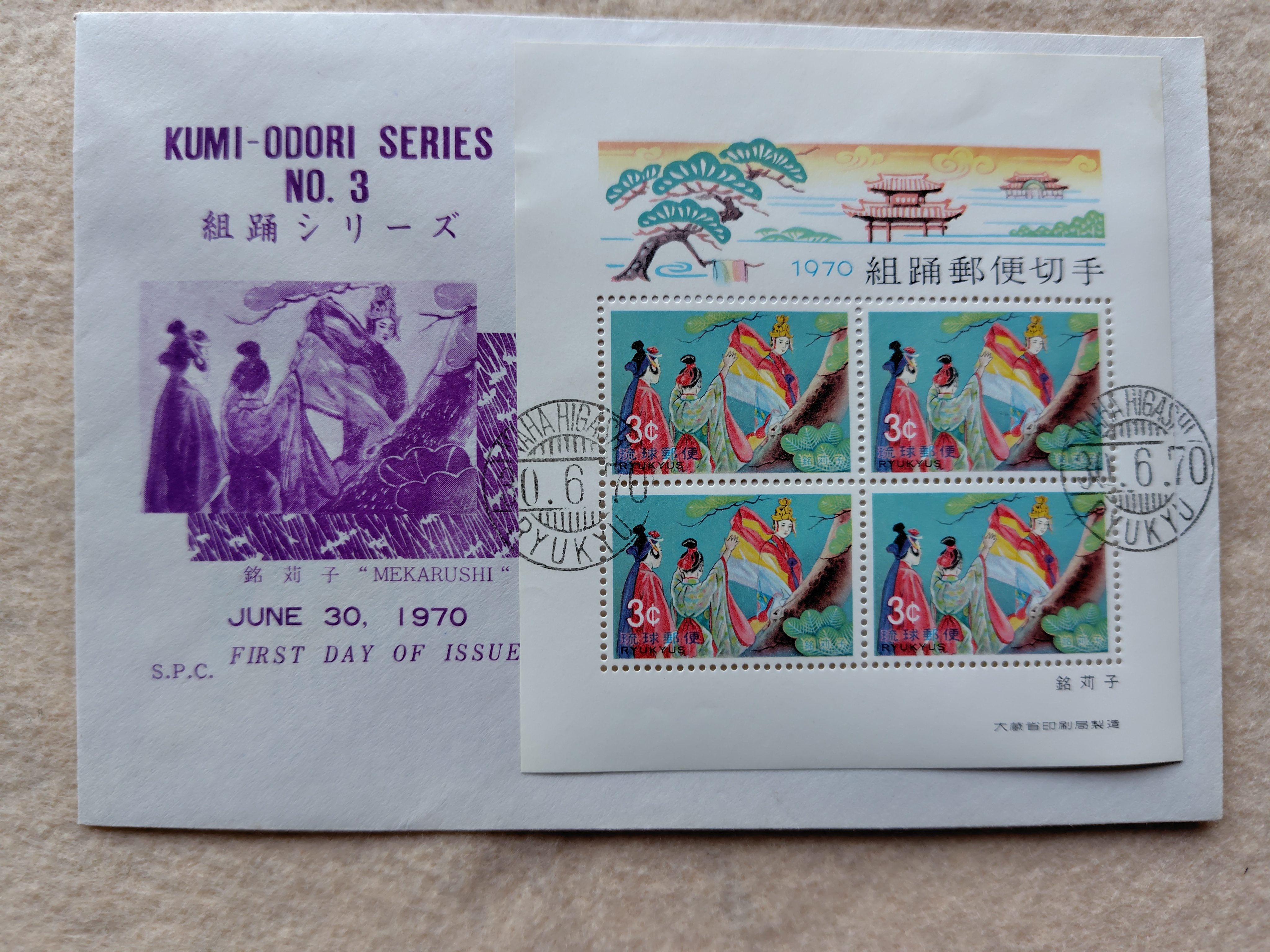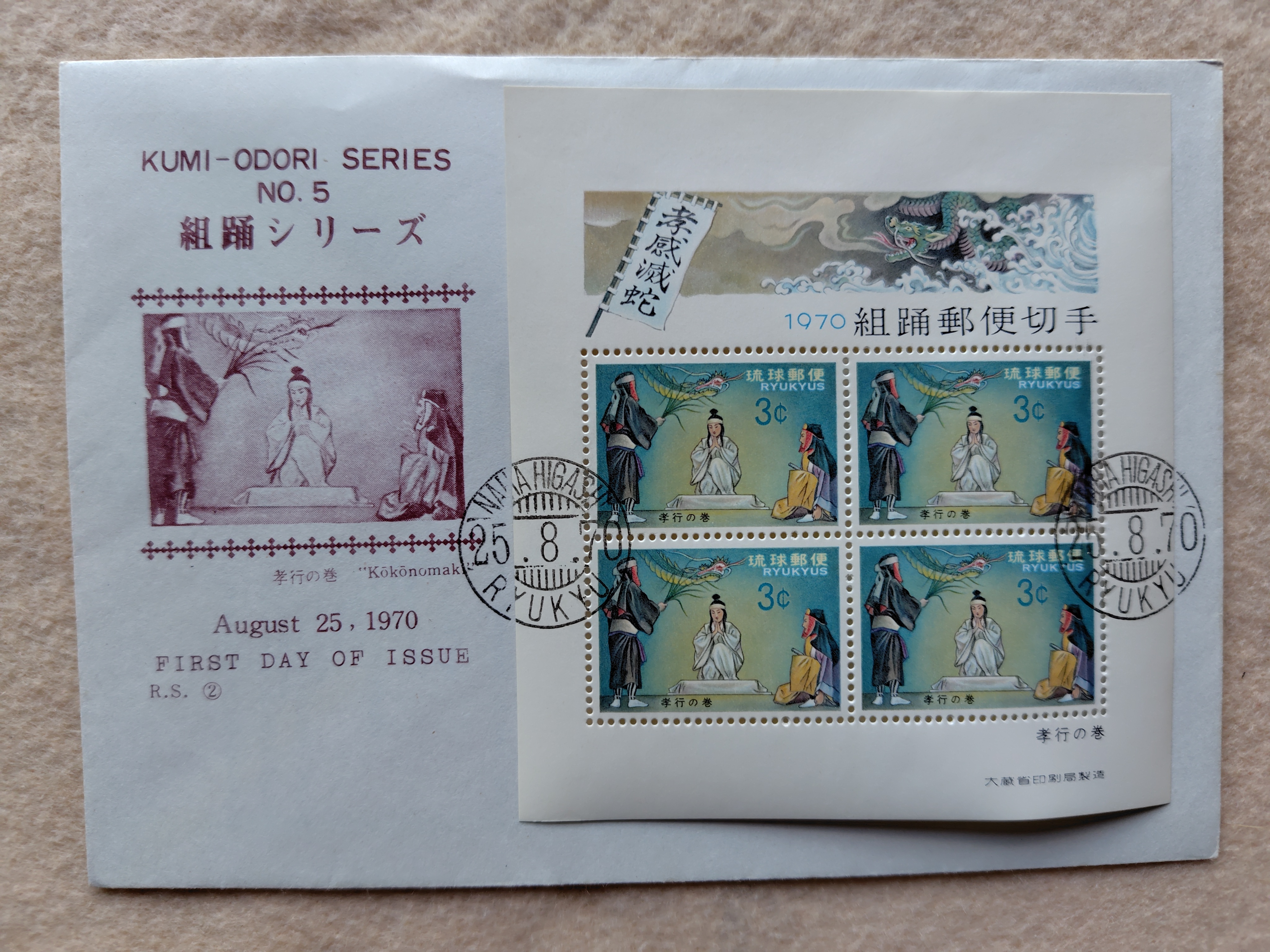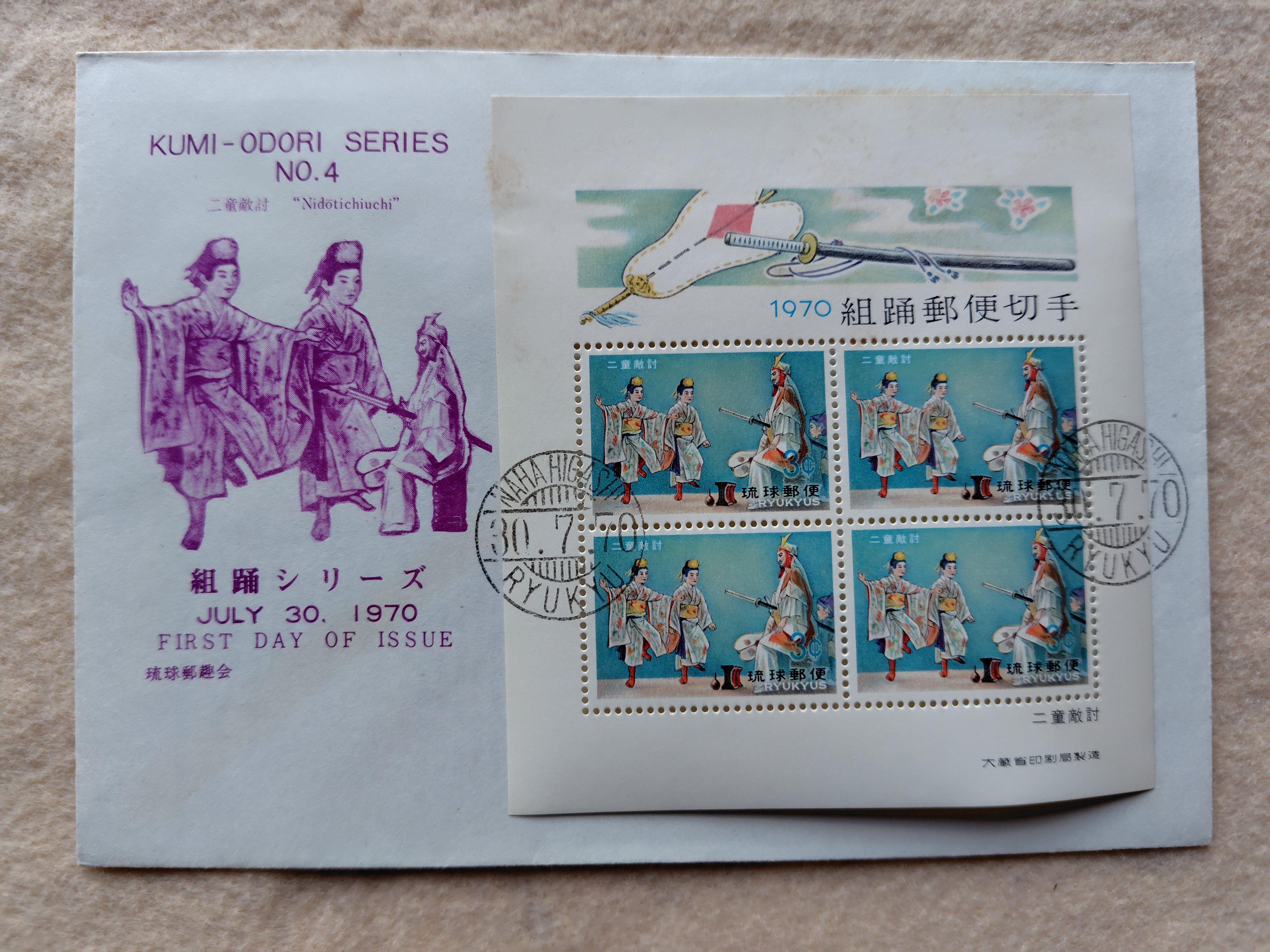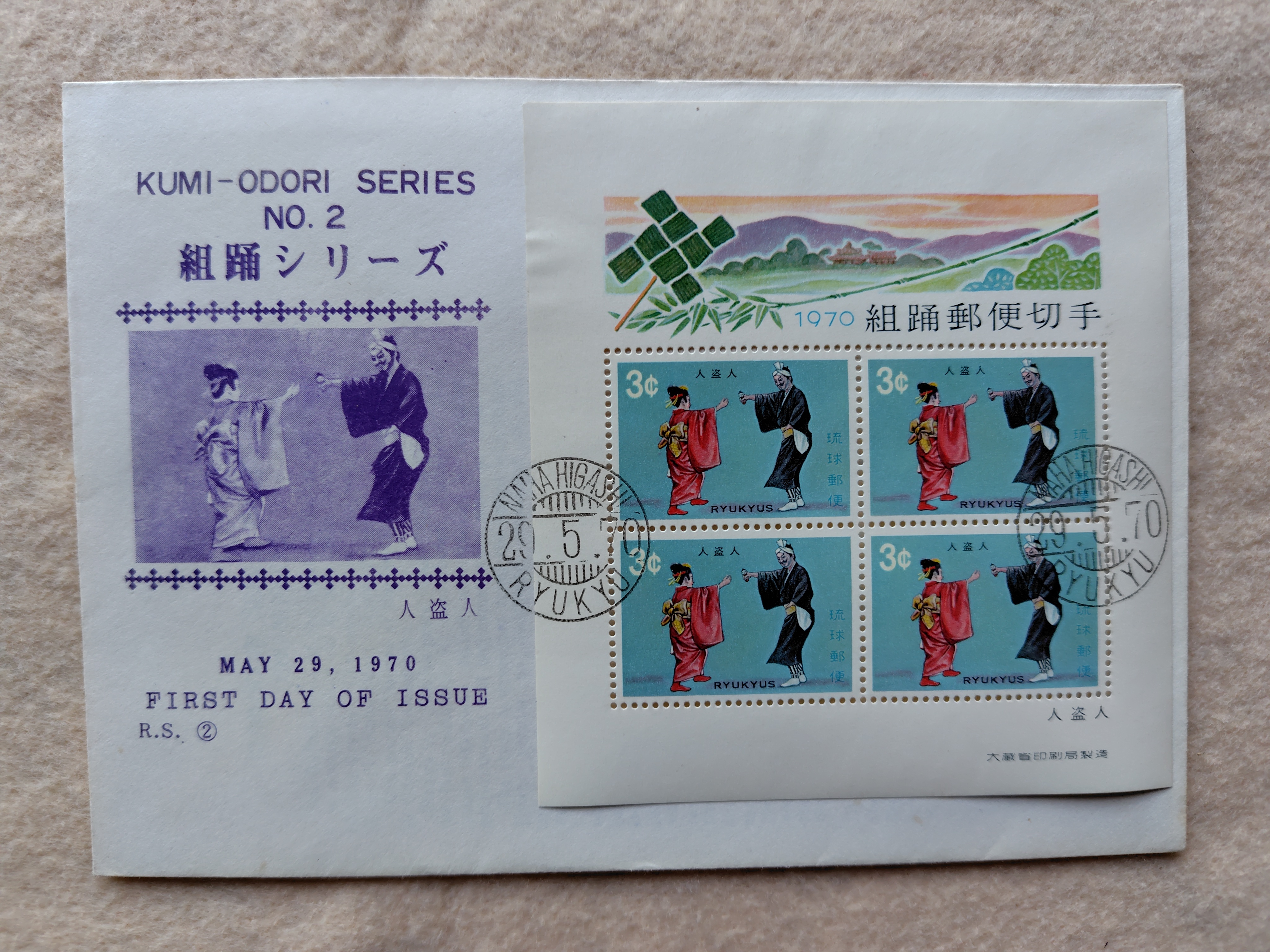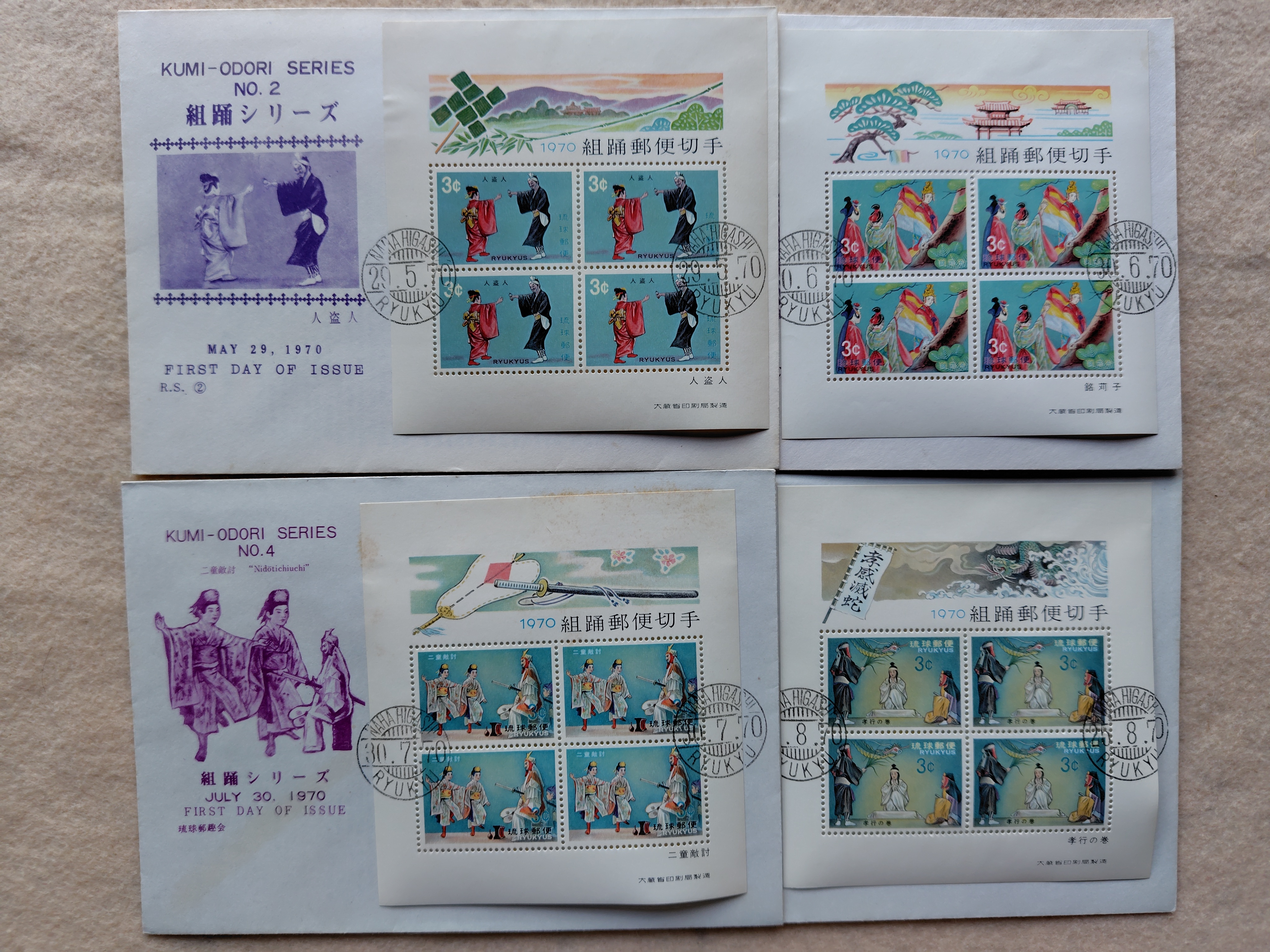 初日カバー 琉球郵便 組踊シリーズ NO。1~NO。5 1970 2026.04.17 家具・雑貨 1970年に発行された組踊シリーズの初日カバーです。 消印は、1970年 NAHAHIGASHI 状態は、良好です。