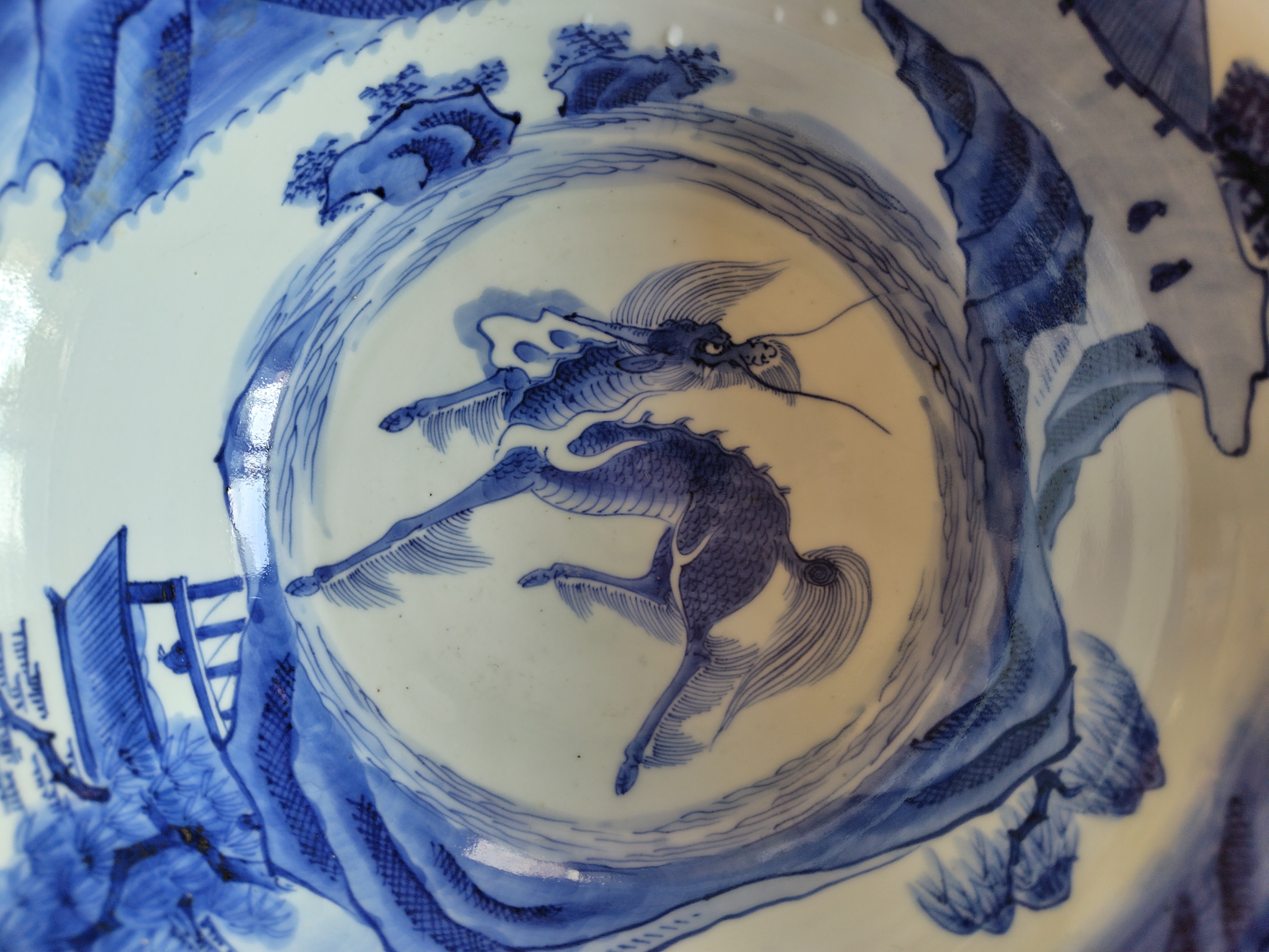 江戸時代幕末の麒麟図の伊万里大鉢です。