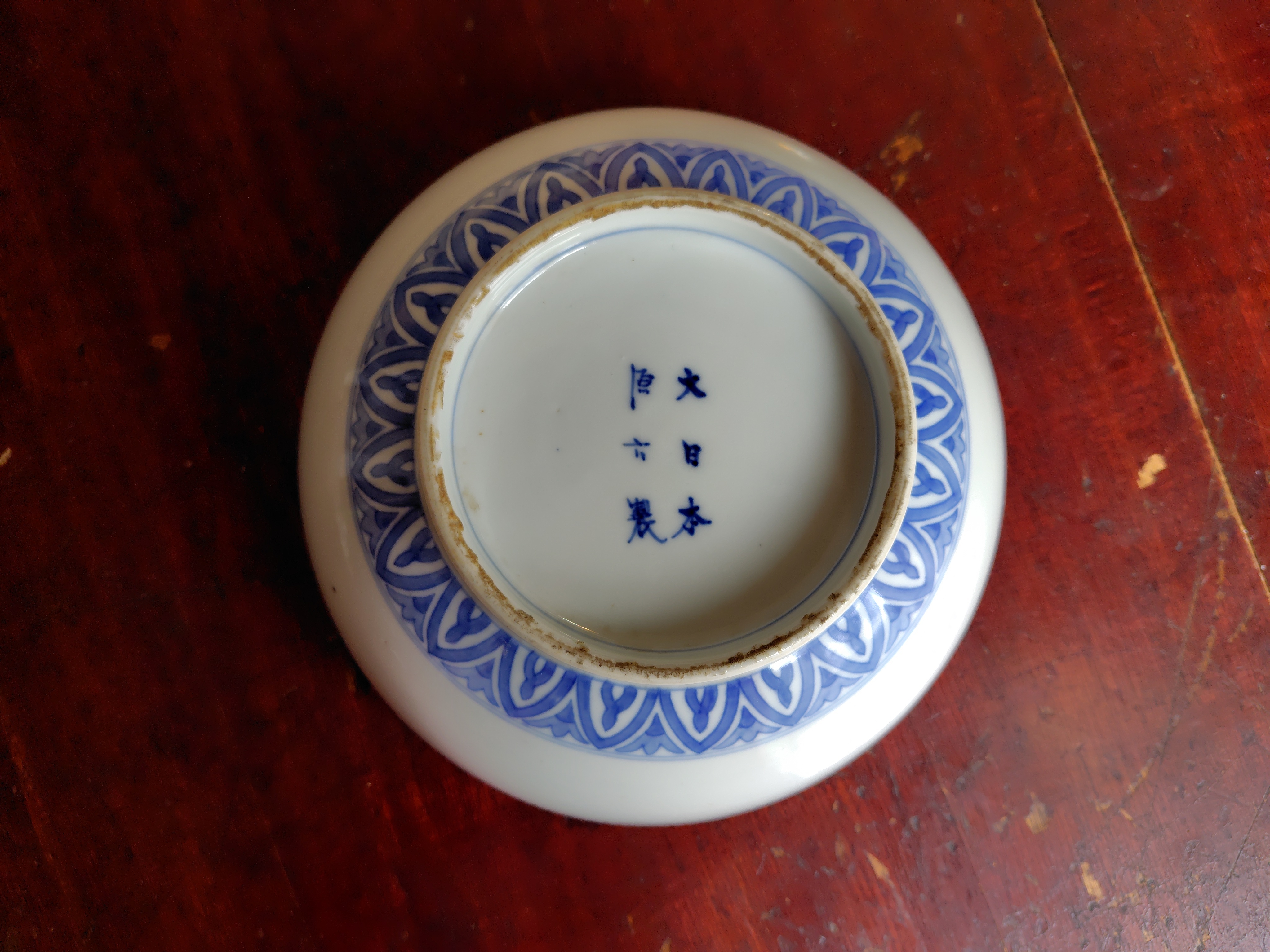 明治時代から大正時代 大日本源六製 大鉢 2025.09.28 食器 明治時代から大正時代に製造された大日本源六製の大鉢です。見込みに香道のマークが有ります。 大きさは、27㎝ 高さは 9㎝ 状態は、良好です。