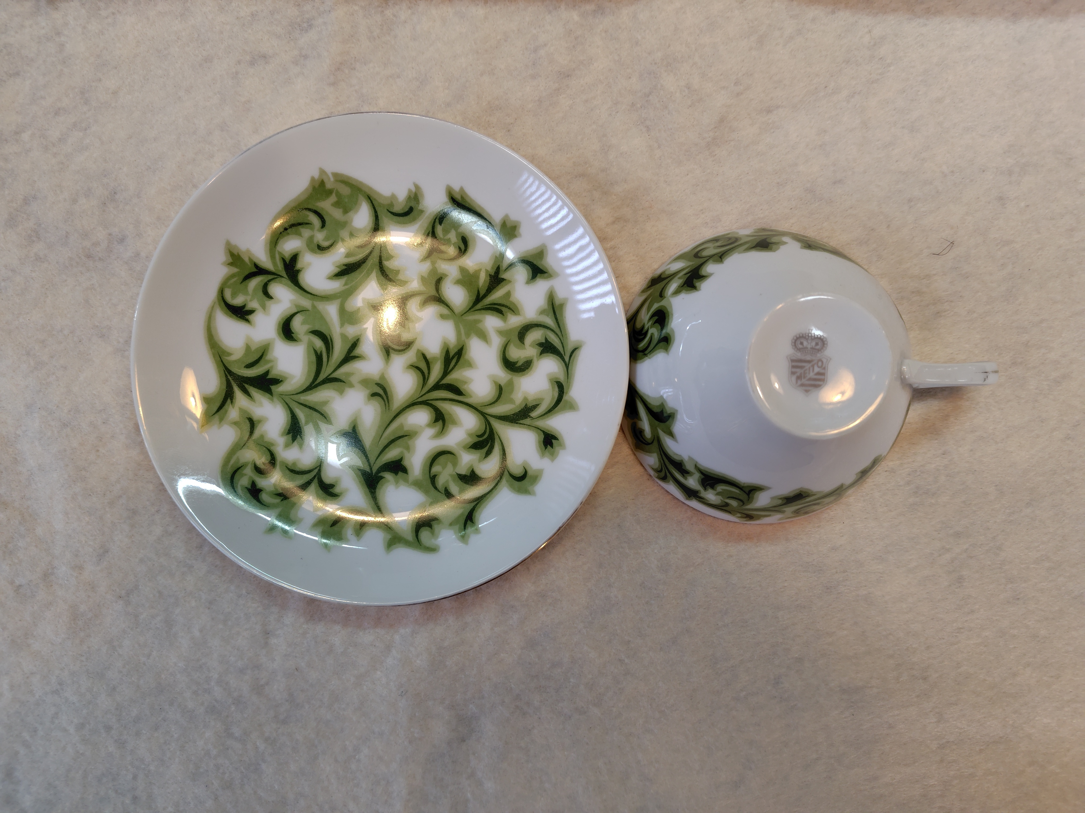 名古屋製陶 ティーカップ 1946~1969 2025.10.22 食器 名古屋製陶のティーカップです。製造は1946年から1969年です。 ソーサーの大きさは、15㎝ カップの口径は10㎝ 高さは5・5㎝ 状態は、良好です。