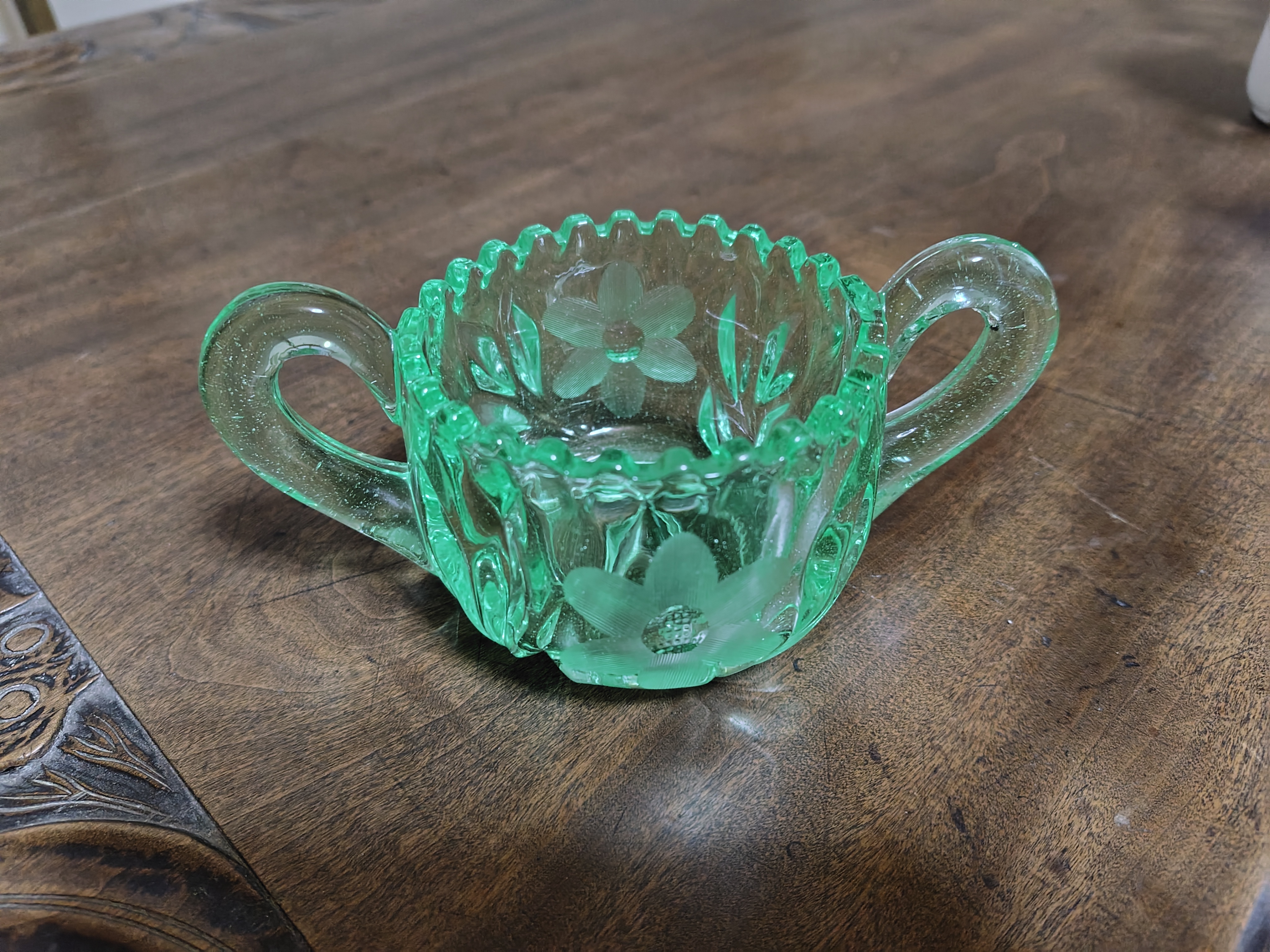 20世紀中ごろのアメリカ製のウランガラスのシュガーポットです。