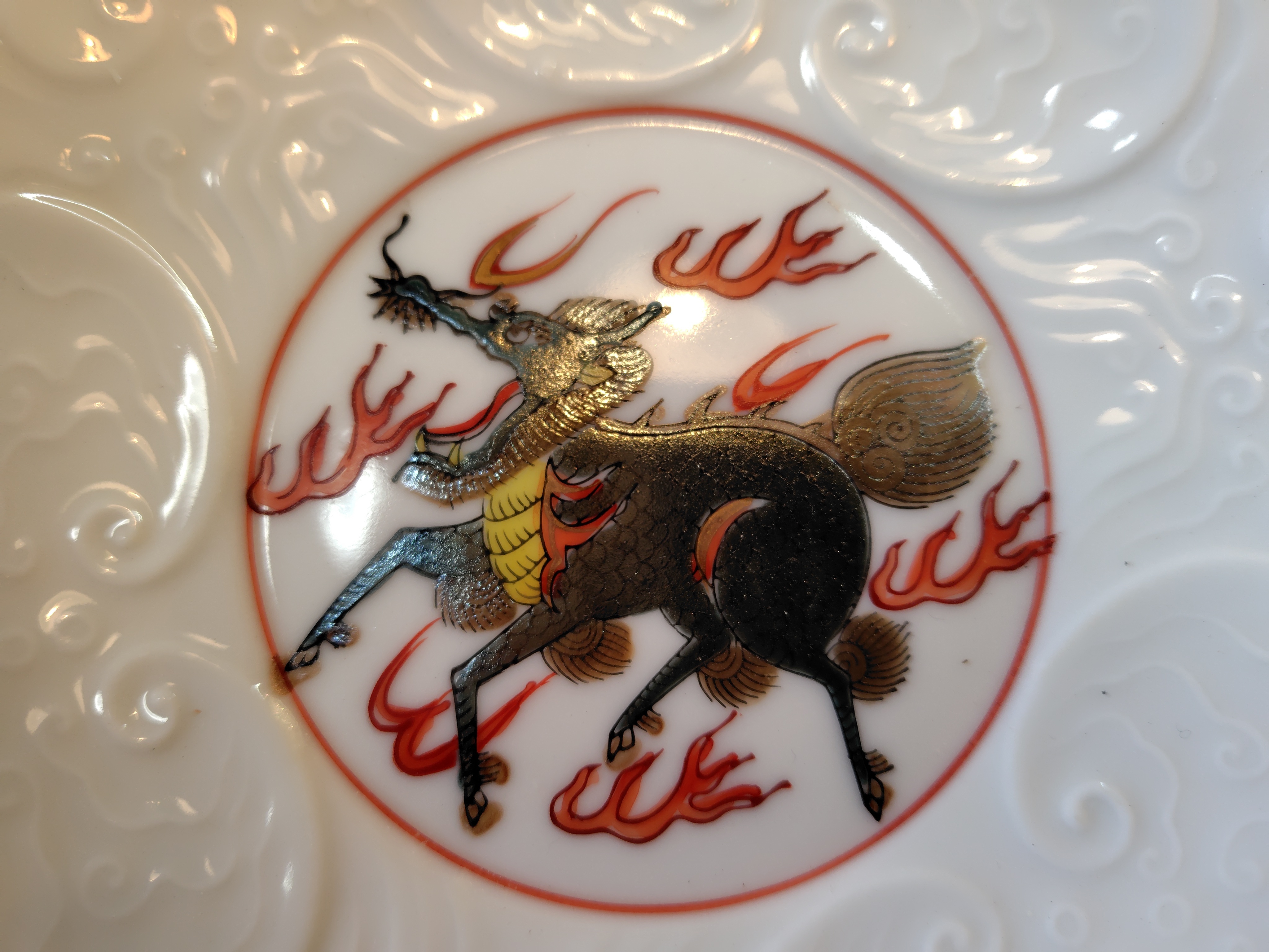 明治時代の伊万里焼の麒麟図丸皿です。