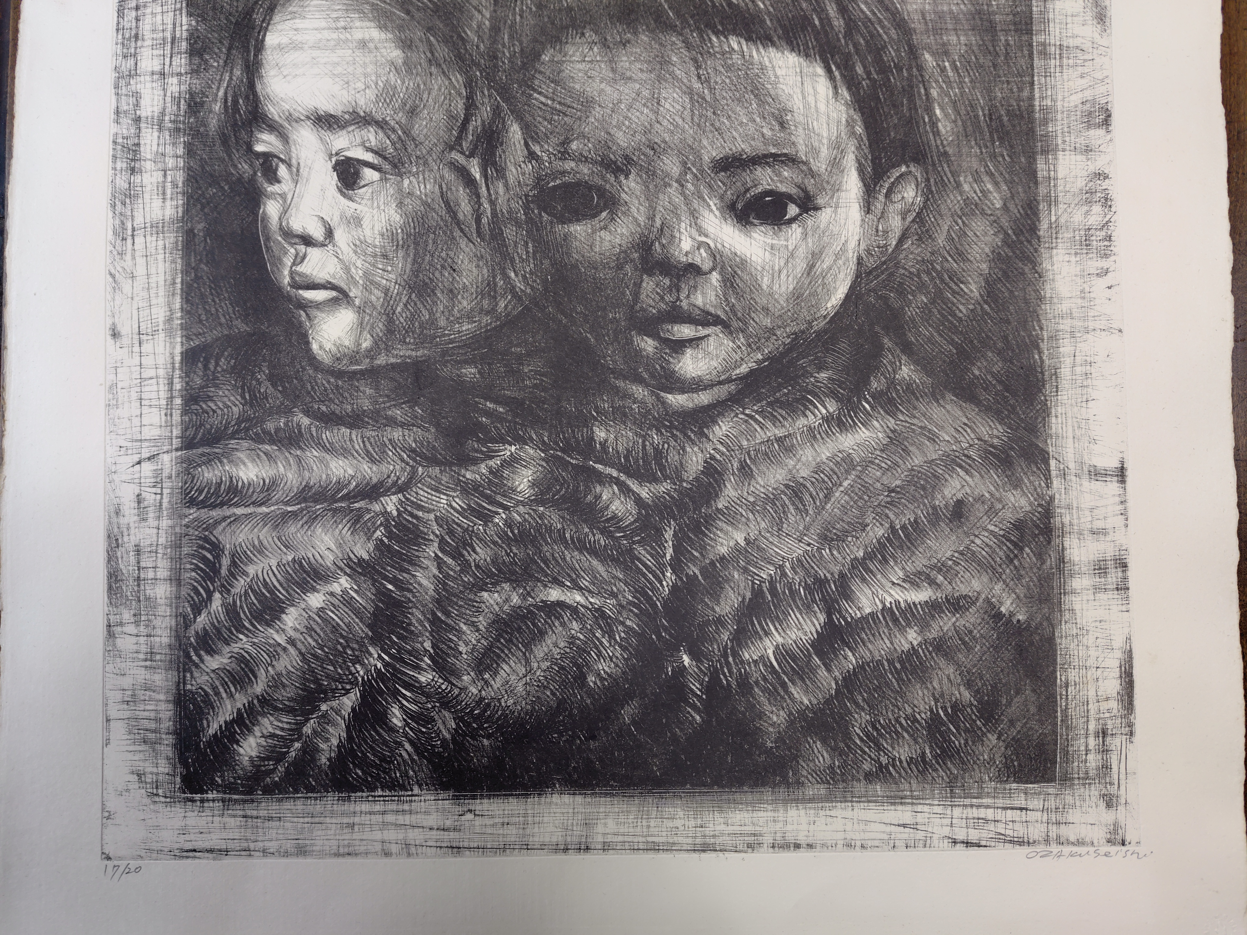 小作青史(おざく せいし) 銅版画 2025.12.25 版画/油絵/浮世絵 小作青史さんの銅版画作品です。タイトルは、姉妹 B シートの大きさは、69x53㎝ エディションナンバーは、17/20 状態は、良好です。