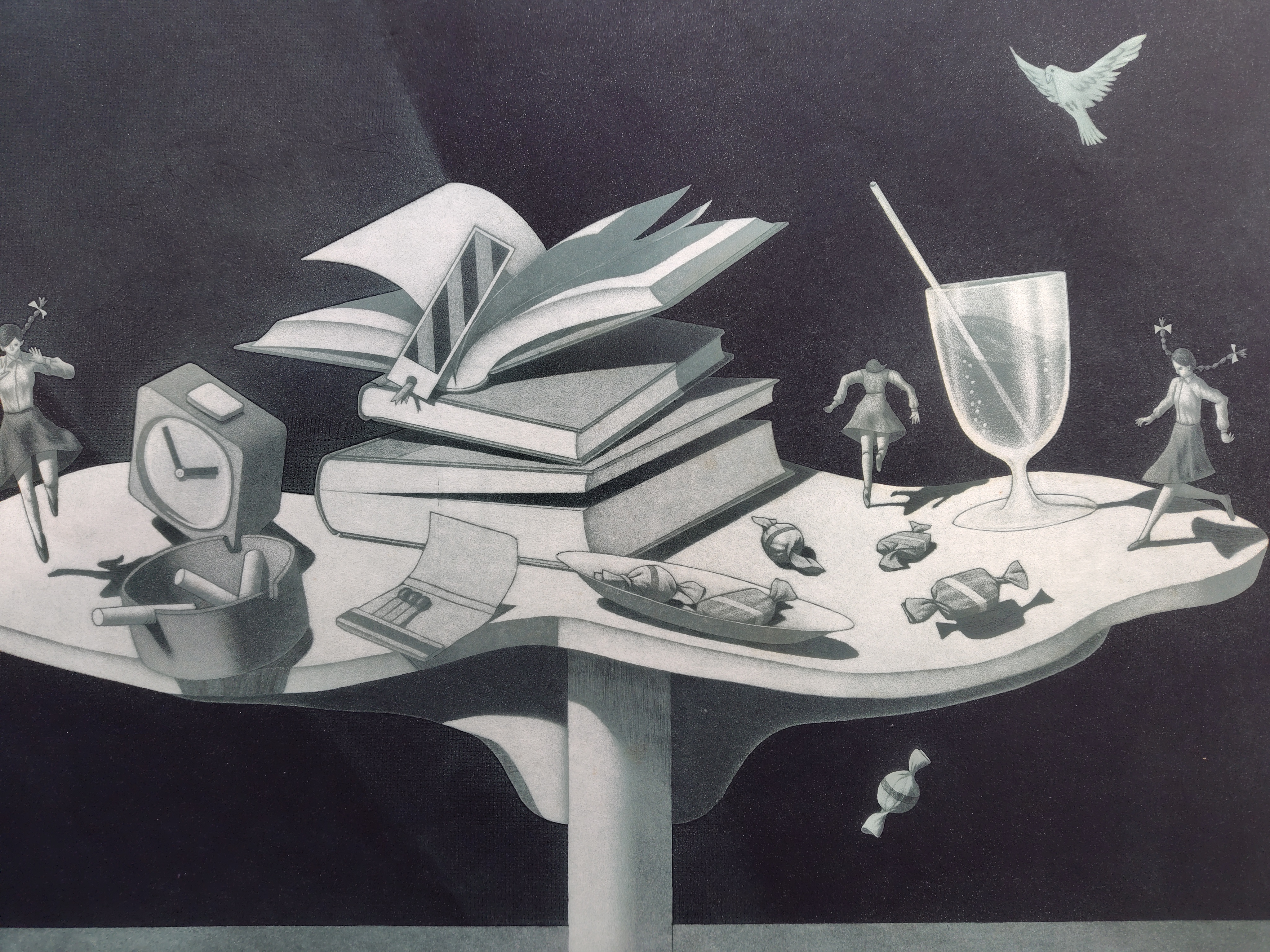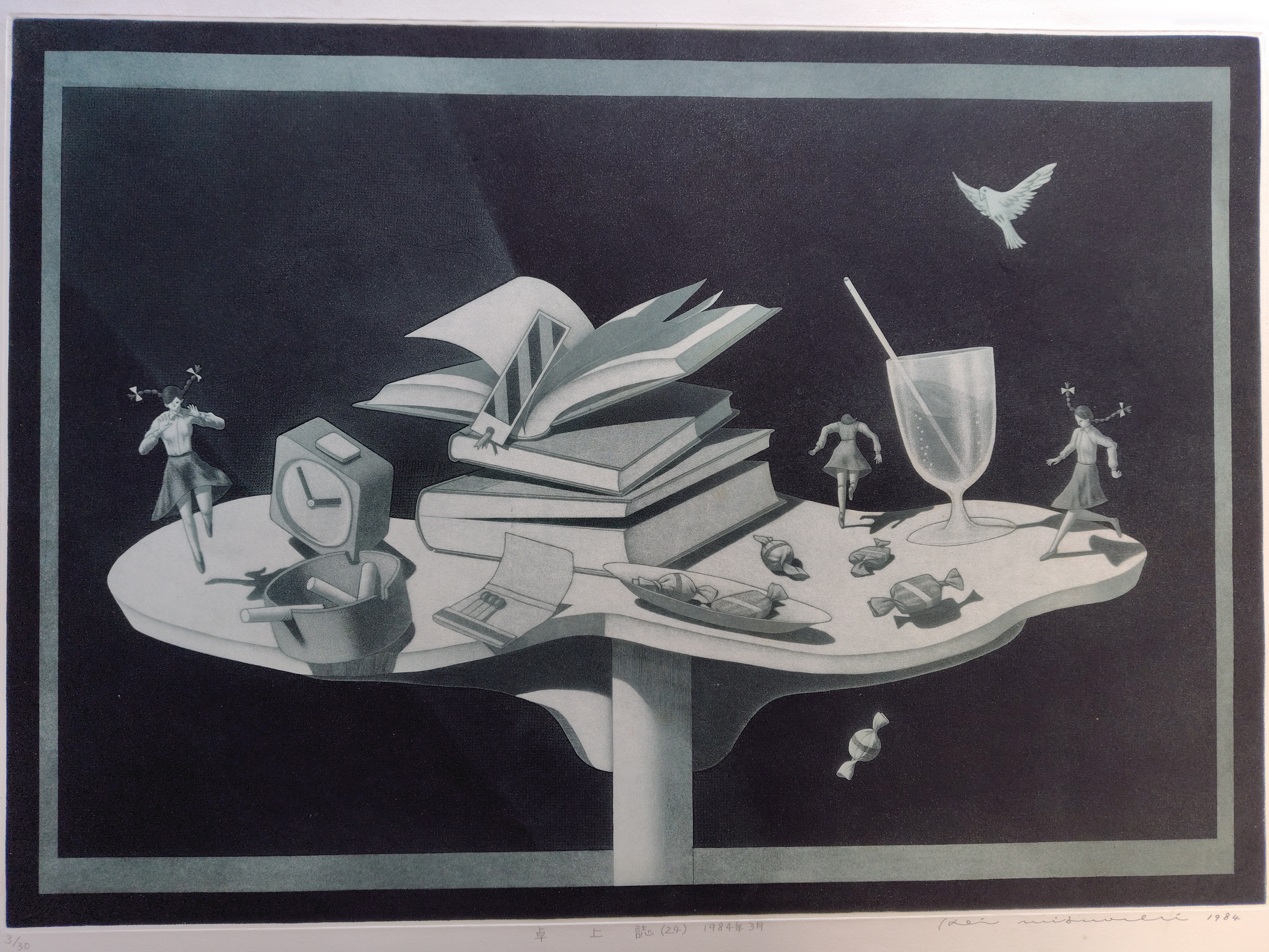水落啓(みずおち けい) 銅版画 2025.12.26 版画/油絵/浮世絵 水落啓さんの銅版画です。タイトルは、『卓上誌 (24)』 1984年 シートの大きさは、62x83㎝ エディションナンバーは、3/30 状態は、良好です。