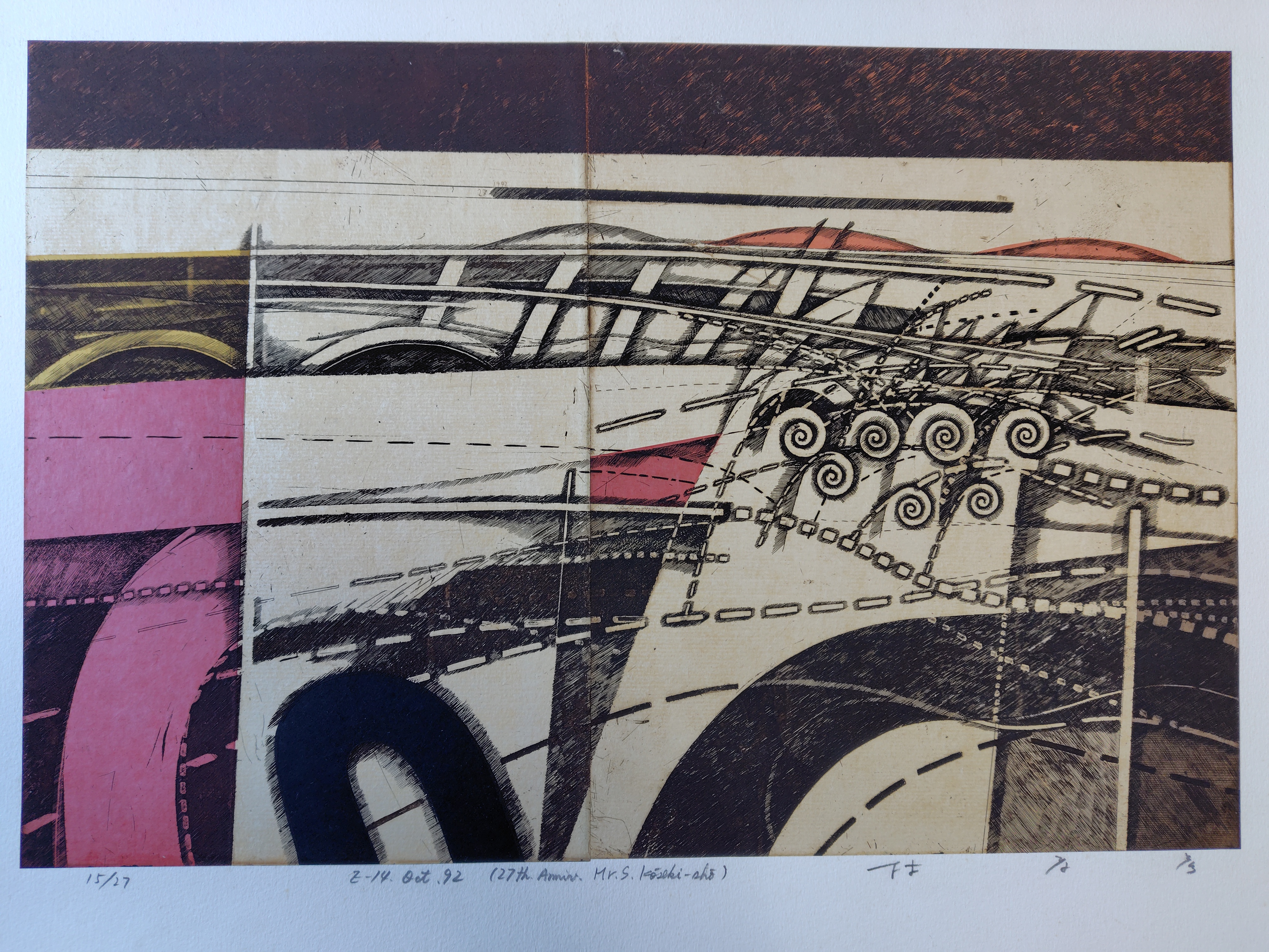 林孝彦(はやし たかひこ) 銅版画 2025.12.27 版画/油絵/浮世絵 林孝彦さんの銅版画です。タイトルは、『Z-14 Oct 92』 シートの大きさは、50x66㎝ エディションナンバーは、15/27 状態は、良好です。