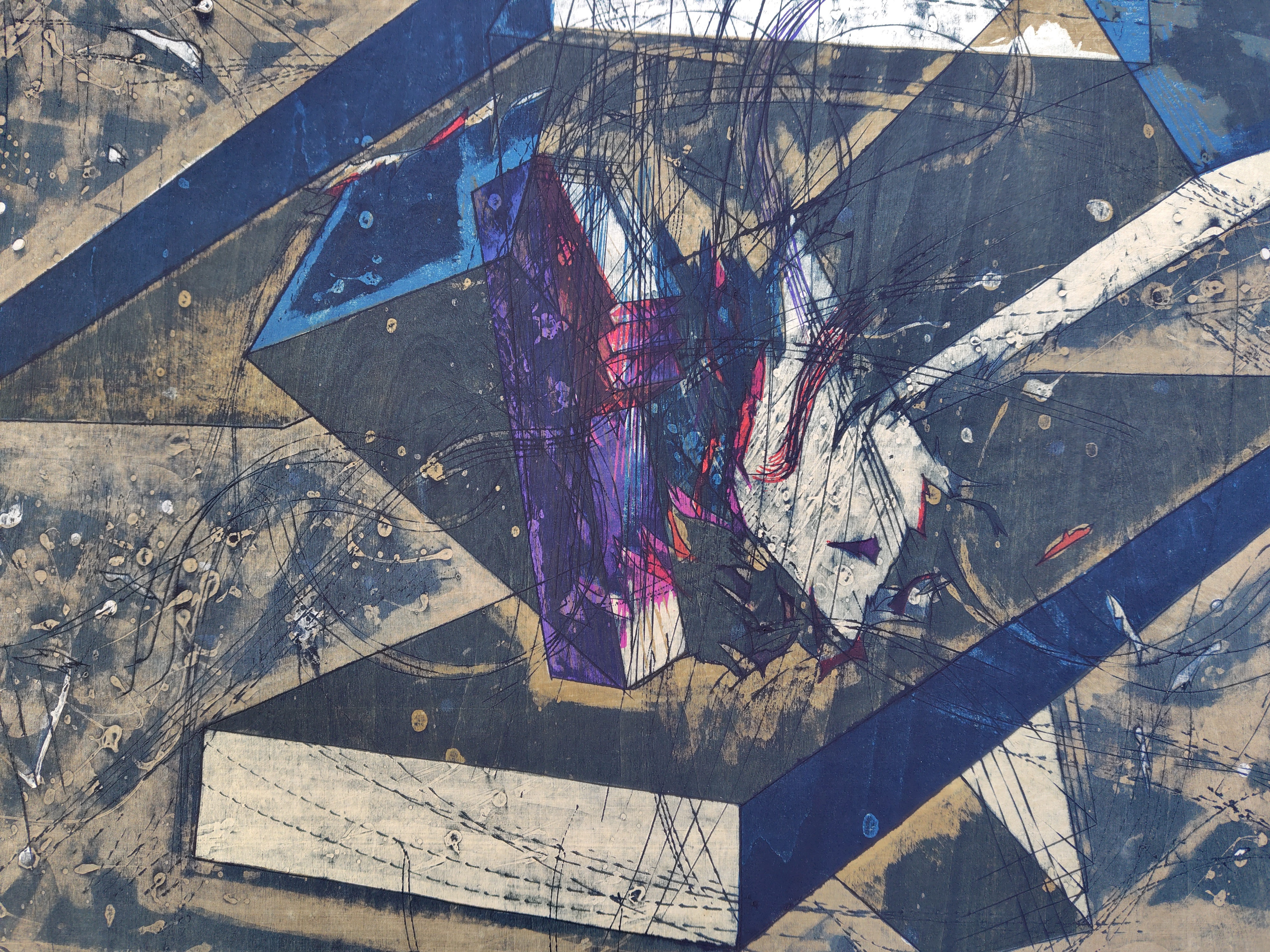 河内成幸(かわち せいこう) 木版画 2025.12.28 版画/油絵/浮世絵 河内成幸さんの木版画です。タイトルは、『加速夢(Ⅸ)』 1984年 シートの大きさは、57x76㎝ エディションナンバーは、7/98 状態は、良好です。