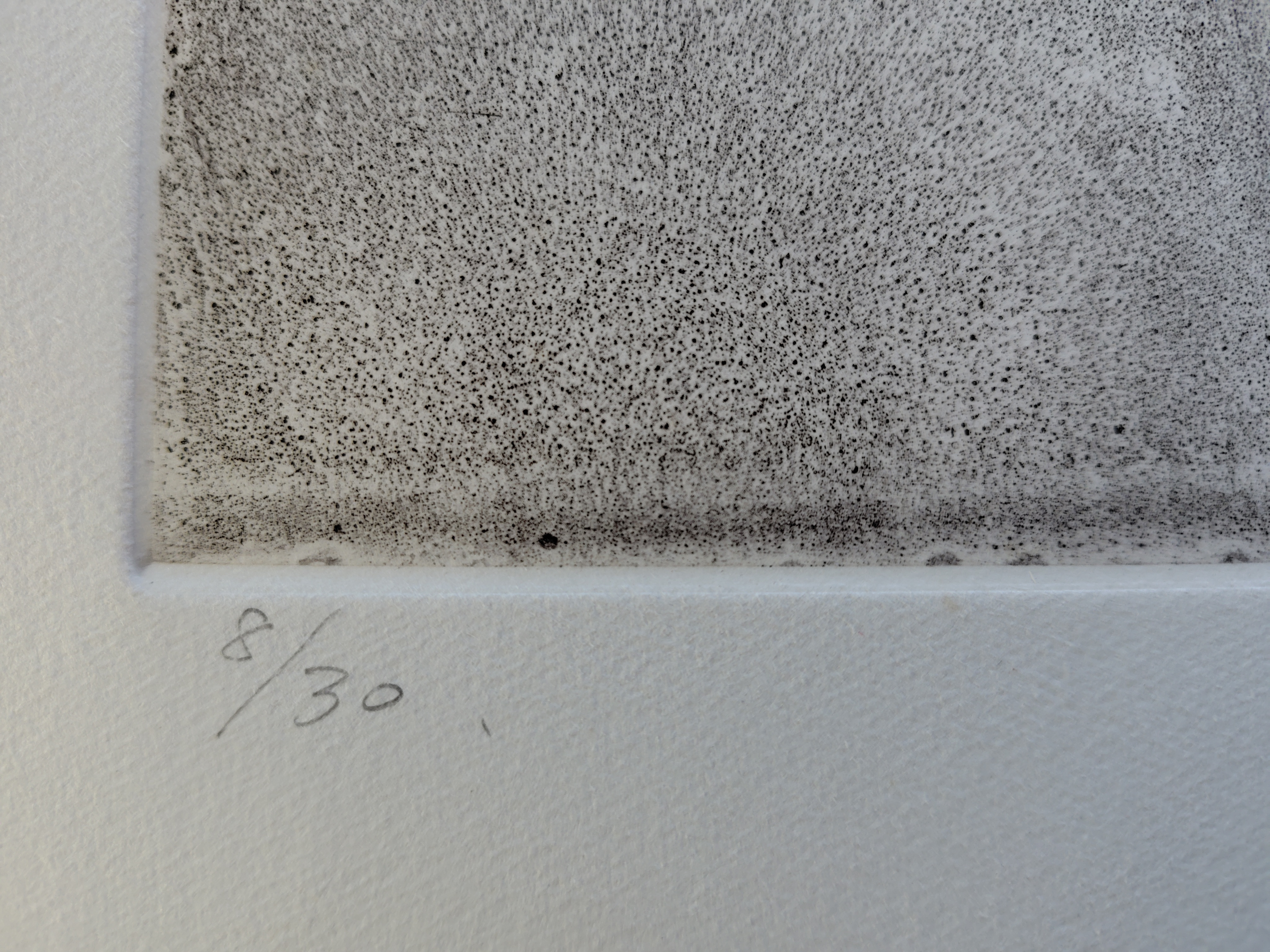 安藤真司(あんどう しんじ) 銅版画 2025.12.28 版画/油絵/浮世絵 安藤真司さんの銅版画です。タイトルは、『雨の余韻』 シートの大きさは、79x56㎝ エディションナンバーは、8/30 状態は、良好です。