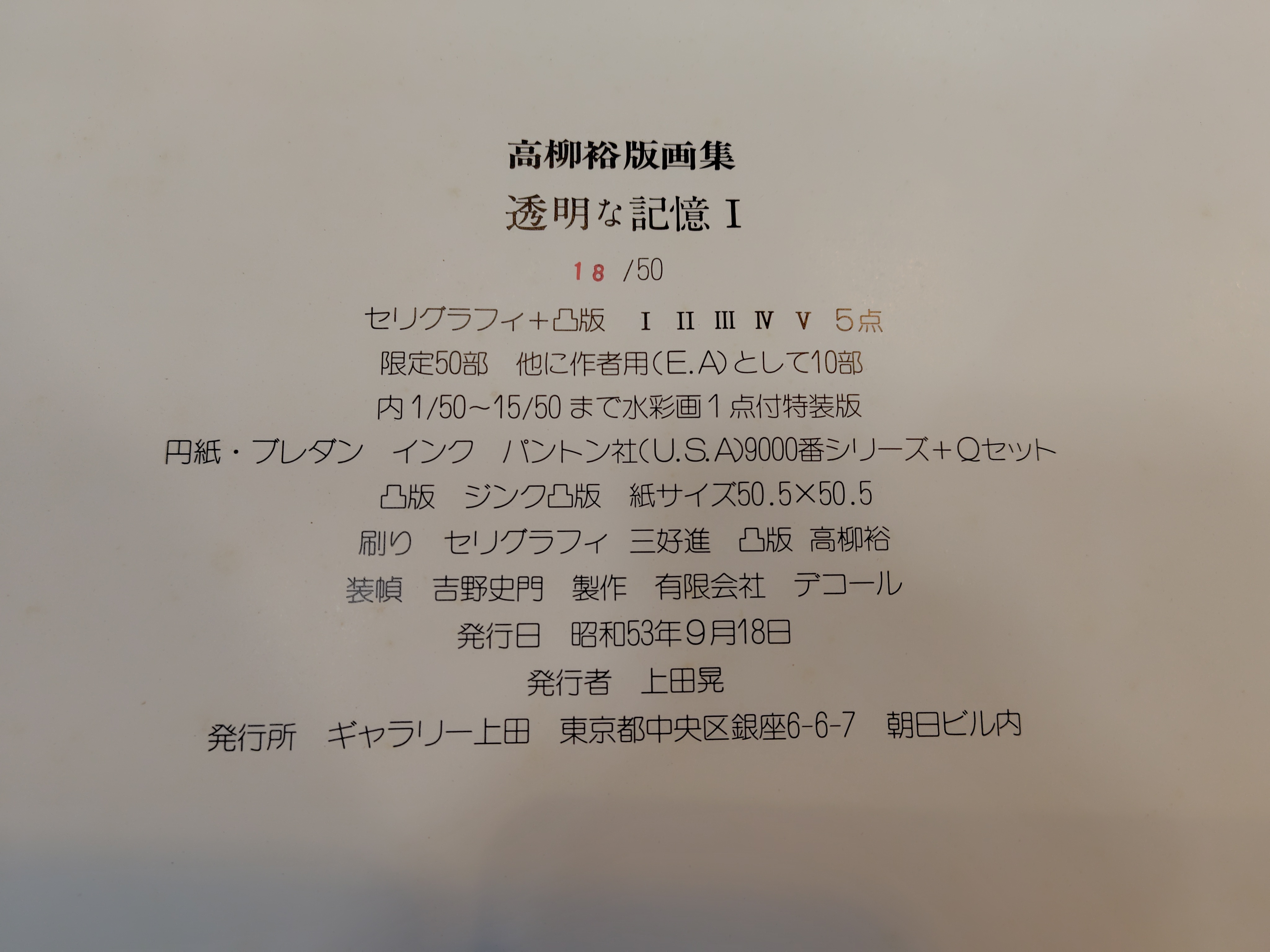 高柳裕(たかやなぎ ゆたか) リトグラフ 2026.01.10 版画/油絵/浮世絵 高柳裕さんのリトグラフ作品です。1978年 透明な記憶 Ⅰ シートの大きさは、50x50㎝ エディションナンバーは、18/50 状態は、良好です。