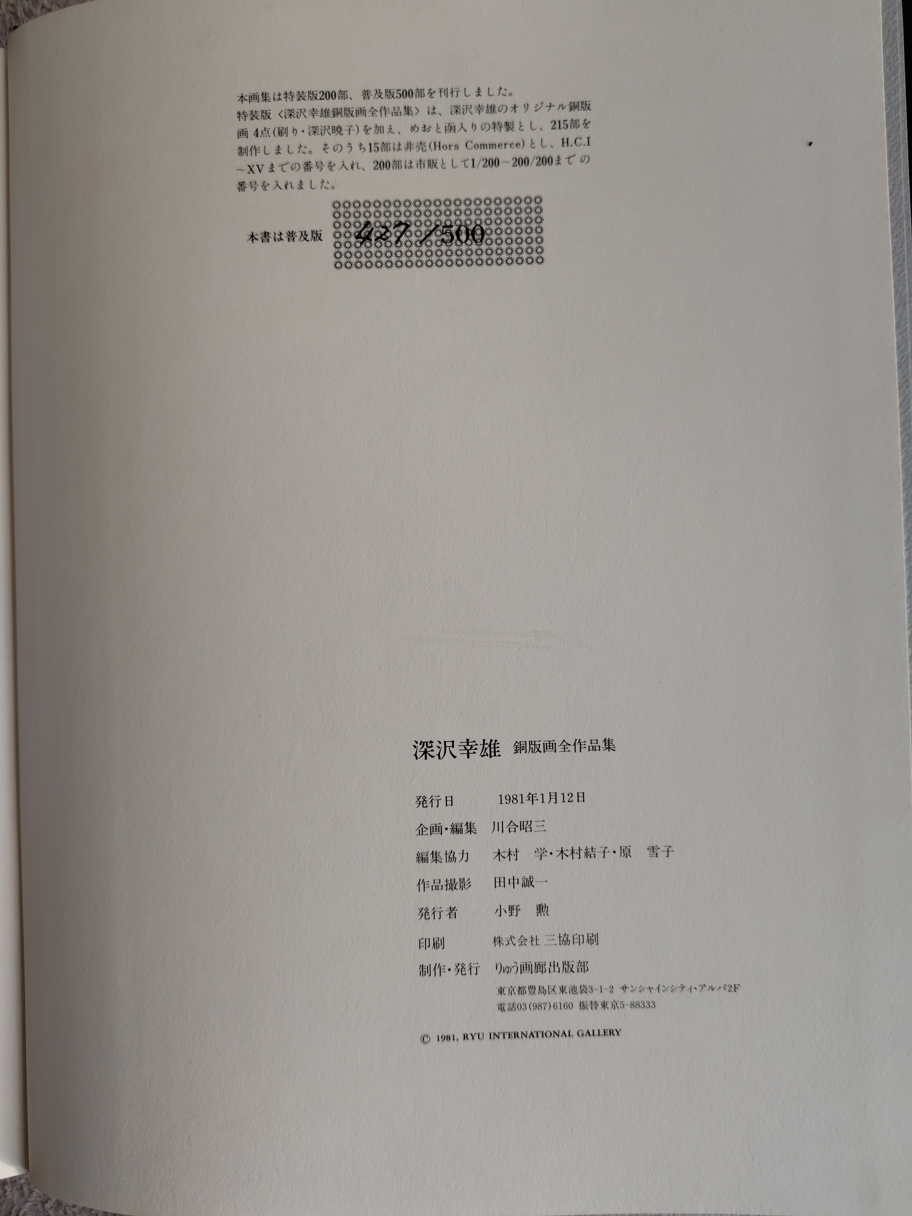 深沢幸雄銅版画全作品集 1955~1980  りゅう画廊出版部