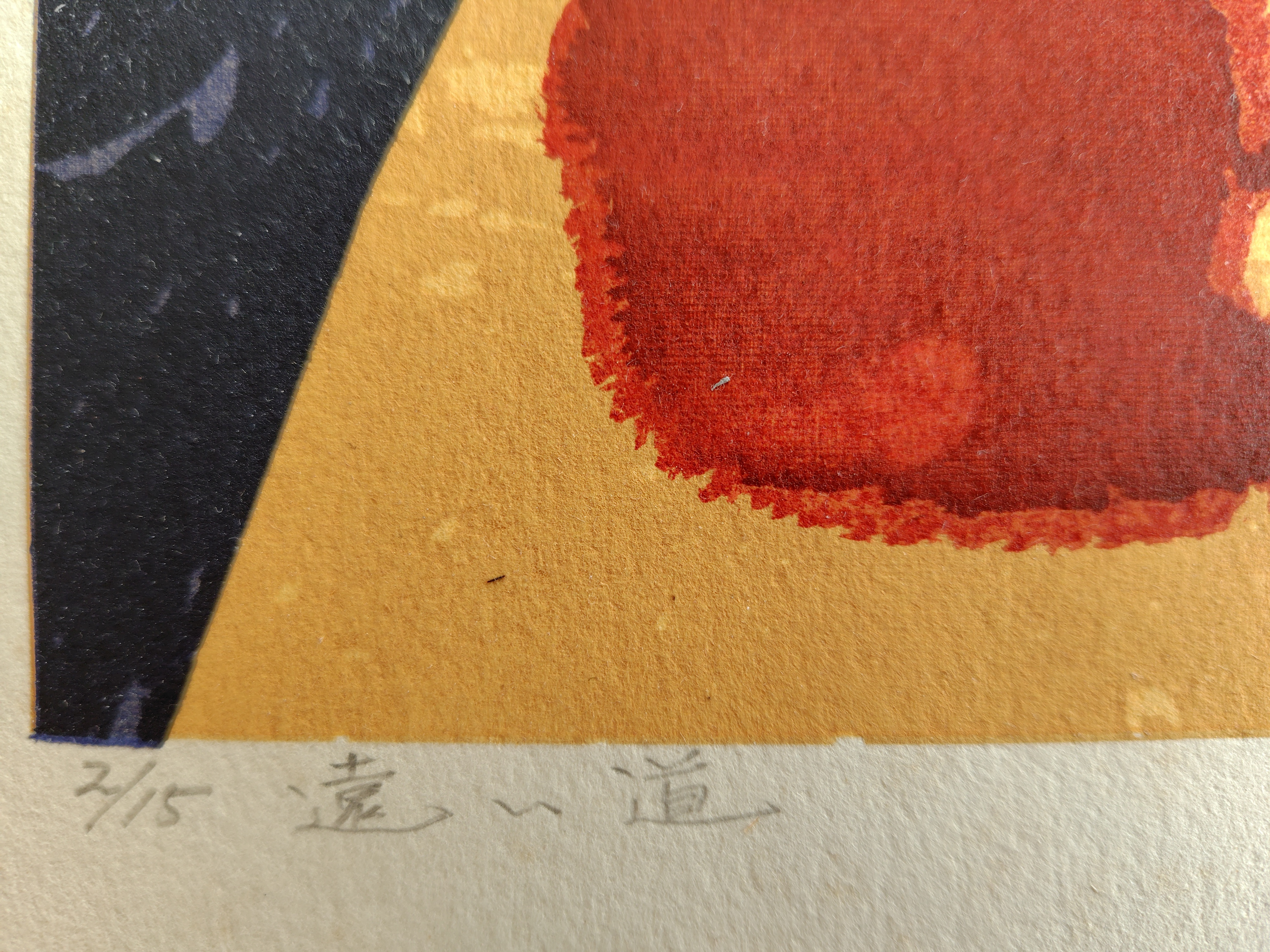 作者不詳 リトグラフ 「遠い道」 2026.02.03 版画/油絵/浮世絵 サインは有りますが、判読不能のため作者不詳としました。 シートの大きさは、37x79㎝ エディションナンバーは、2/12 状態は、良好です。