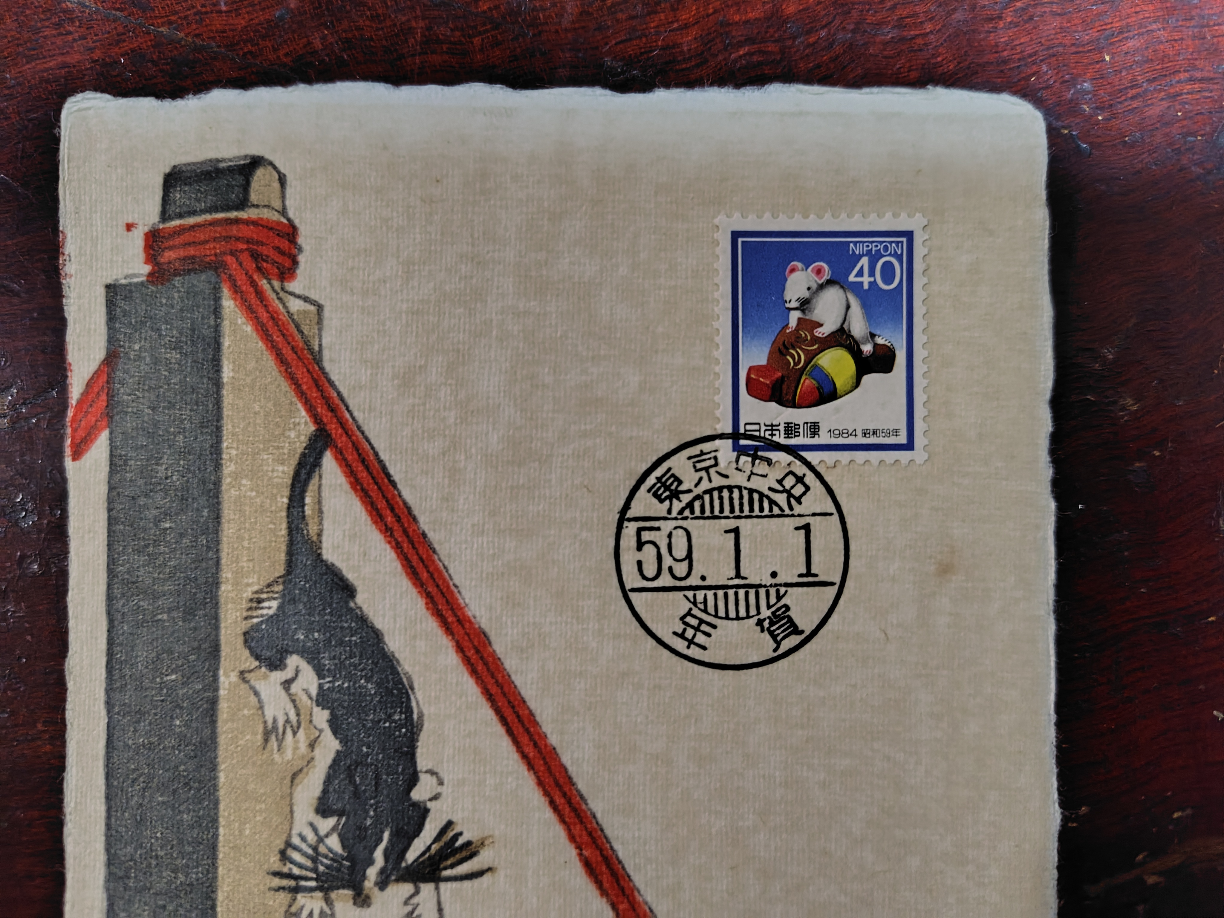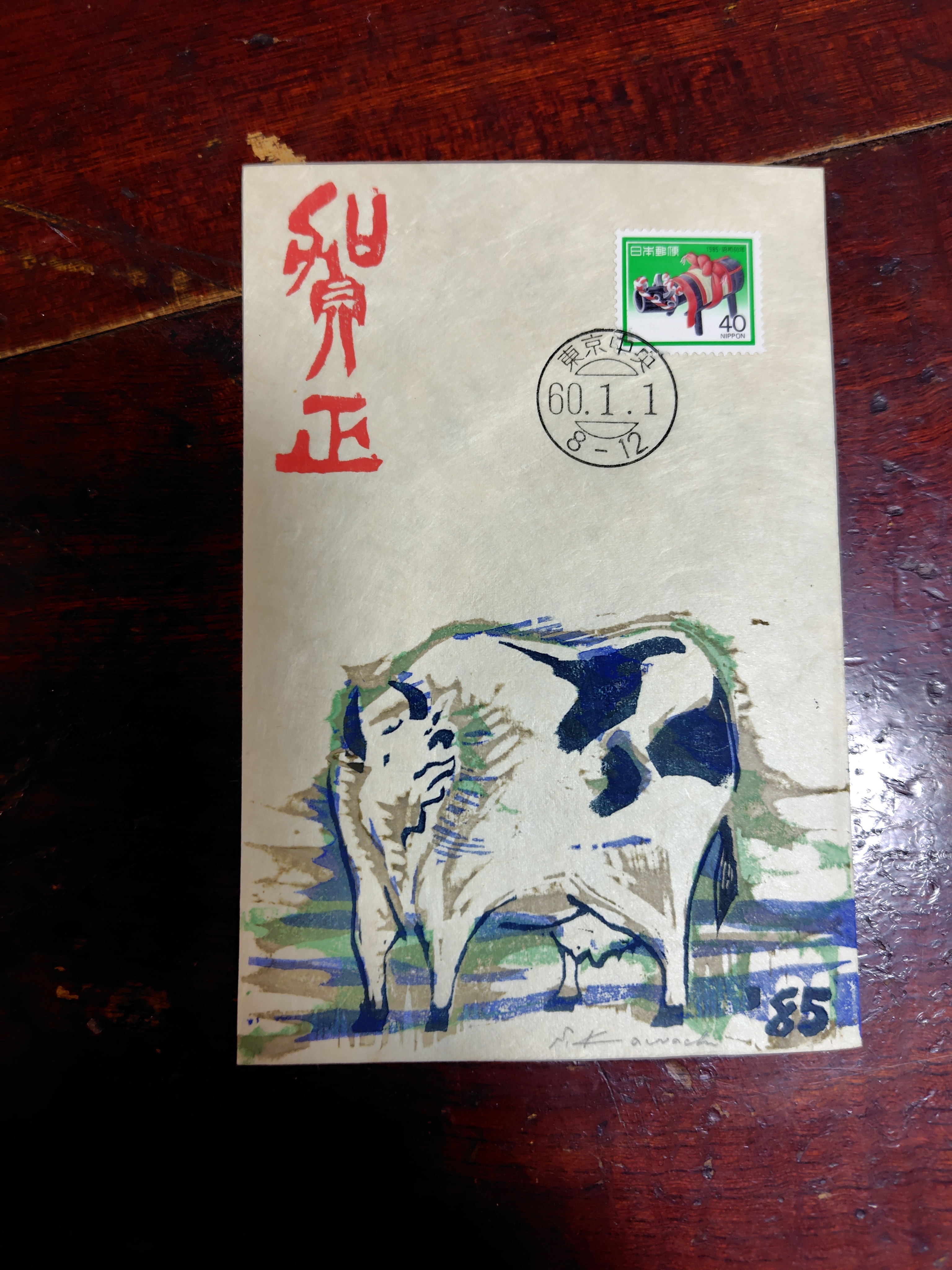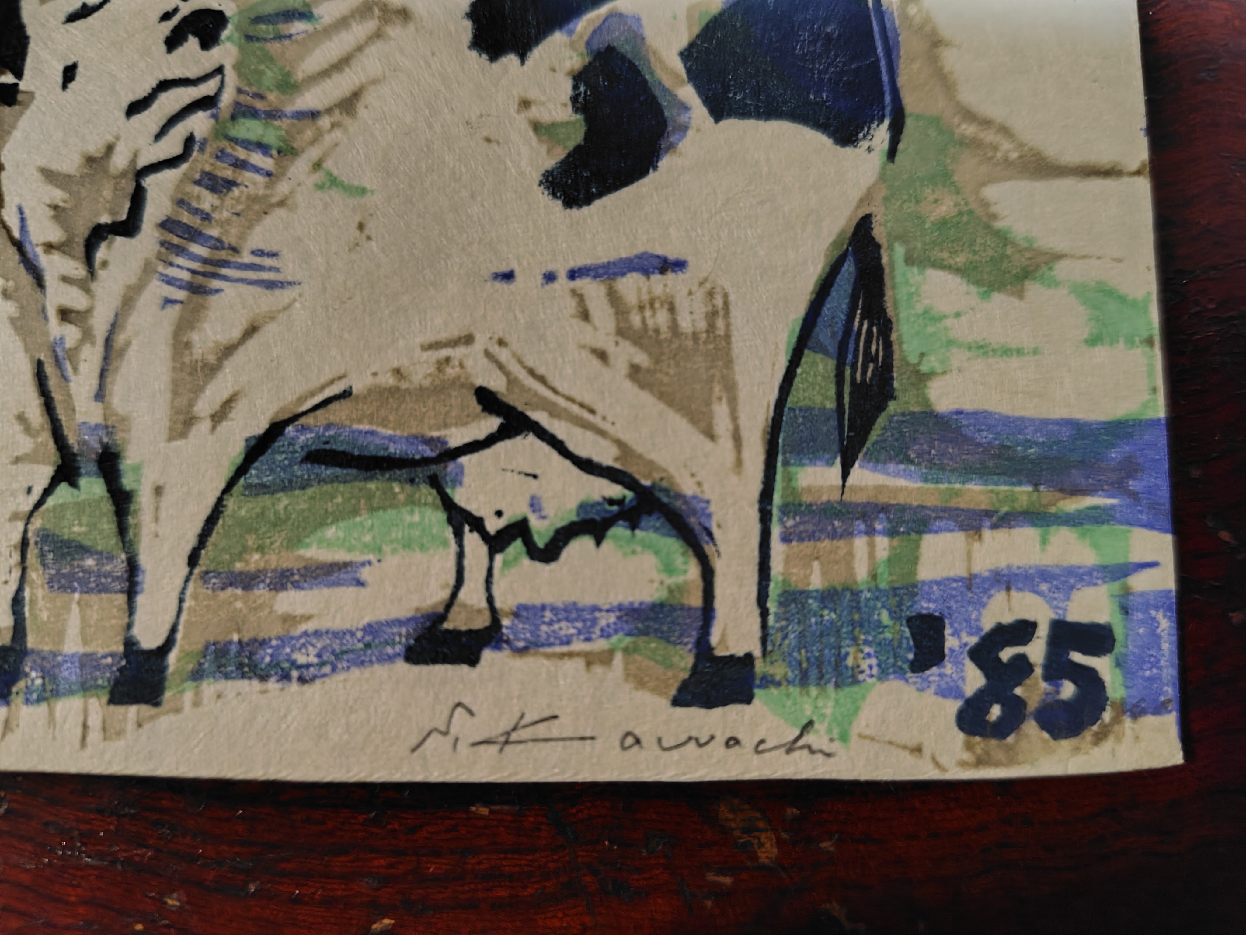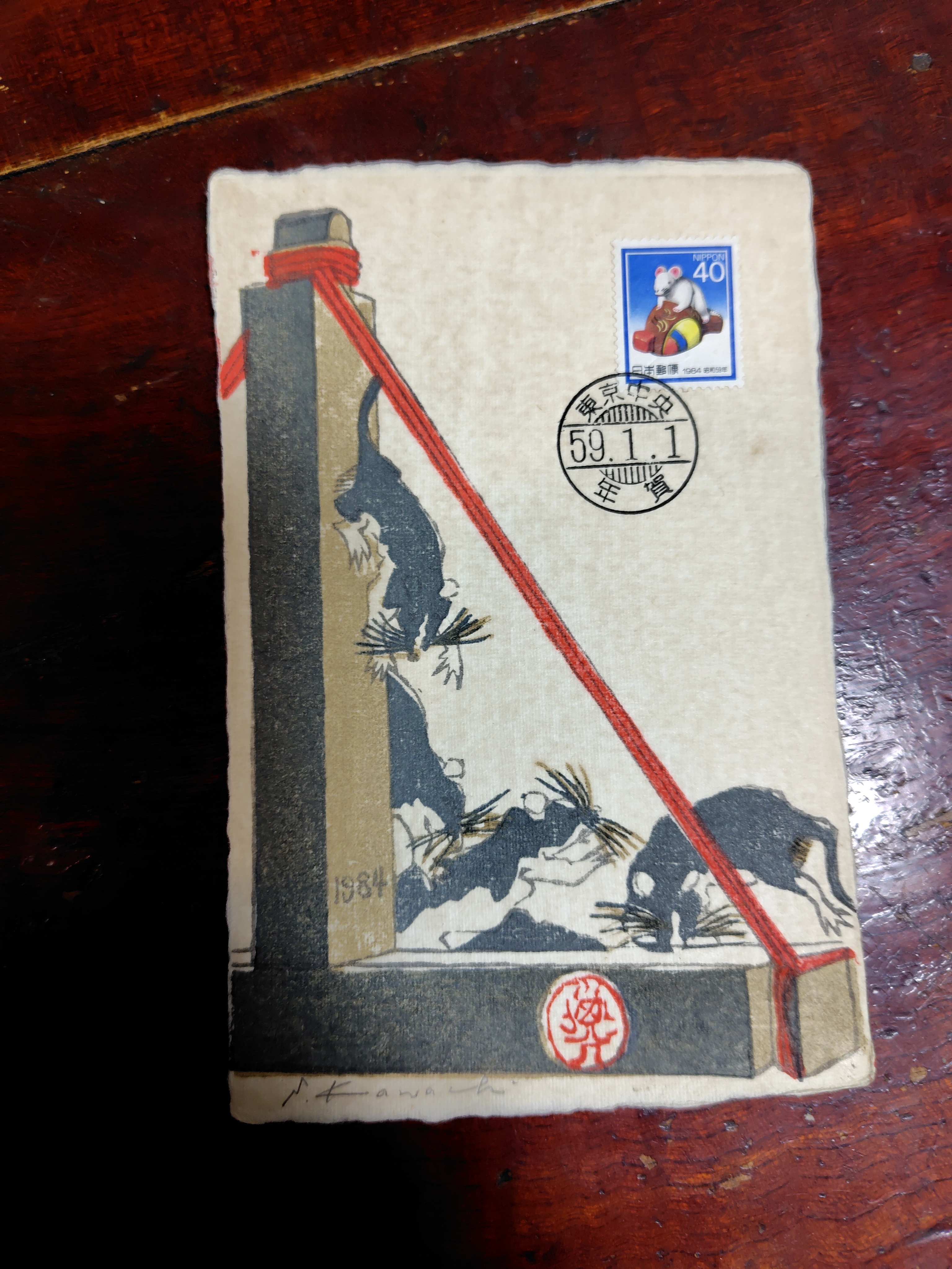 昭和59年のネズミ  昭和60年の牛 を表現した木版画作品です。